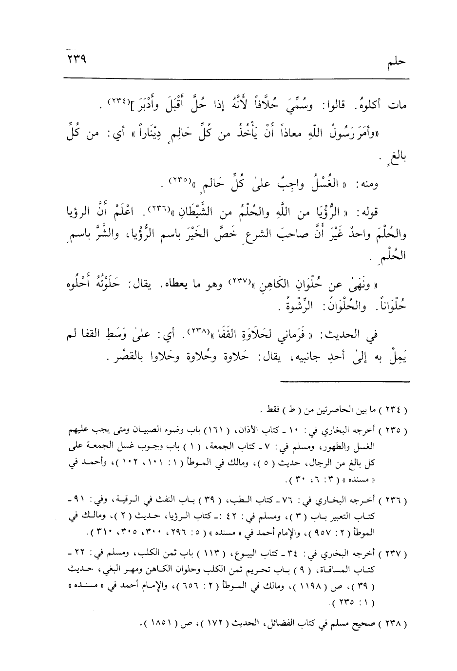 وَنَهَى عَن حلوان الكاهن وَهُوَ مَا يعطاه يُقَال حلوته أحلوه حلوانا والحلوان الرِّشْوَة.