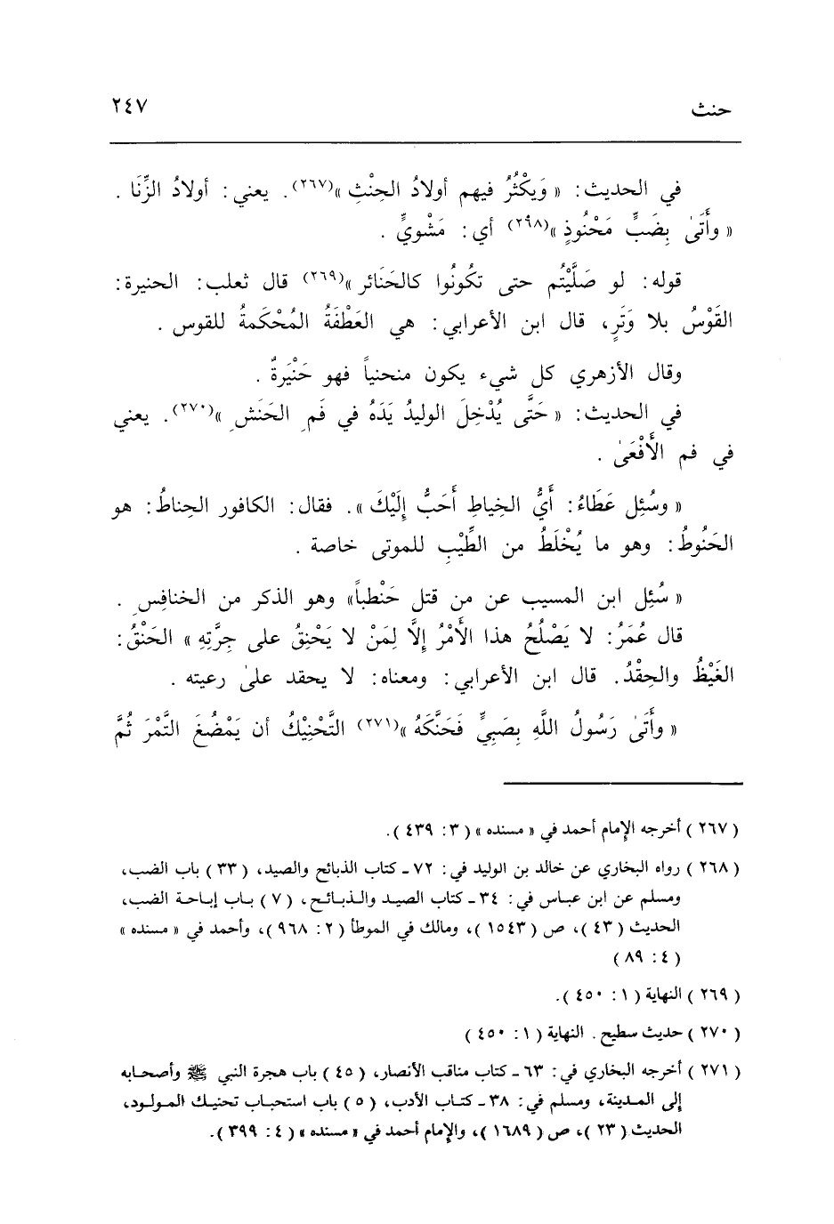 قَوْله لَو صليتم حَتَّى تَكُونُوا كالحنائر قَالَ ثَعْلَب الحنيرة الْقوس بِلَا وتر قَالَ ابْن الْأَعرَابِي هِيَ العطفة المحكمة للقوس.