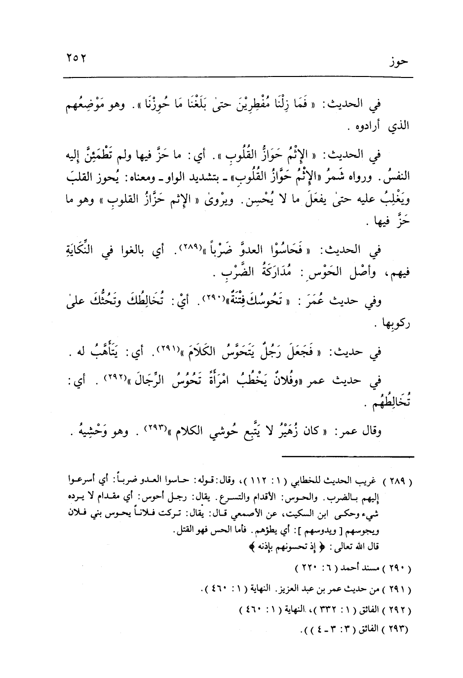 فِي الحَدِيث الْإِثْم حواز الْقُلُوب أَي مَا حز فِيهَا وَلم تطمئِن إِلَيْهِ النَّفس وَرَوَاهُ شمر الْإِثْم حواز الْقُلُوب بتَشْديد الْوَاو وَمَعْنَاهُ يحوز الْقلب ويغلب عَلَيْهِ حَتَّى يفعل مَا لَا يحسن وَيروَى الْإِثْم حزاز الْقُلُوب وَهُوَ مَا حز فِيهَا