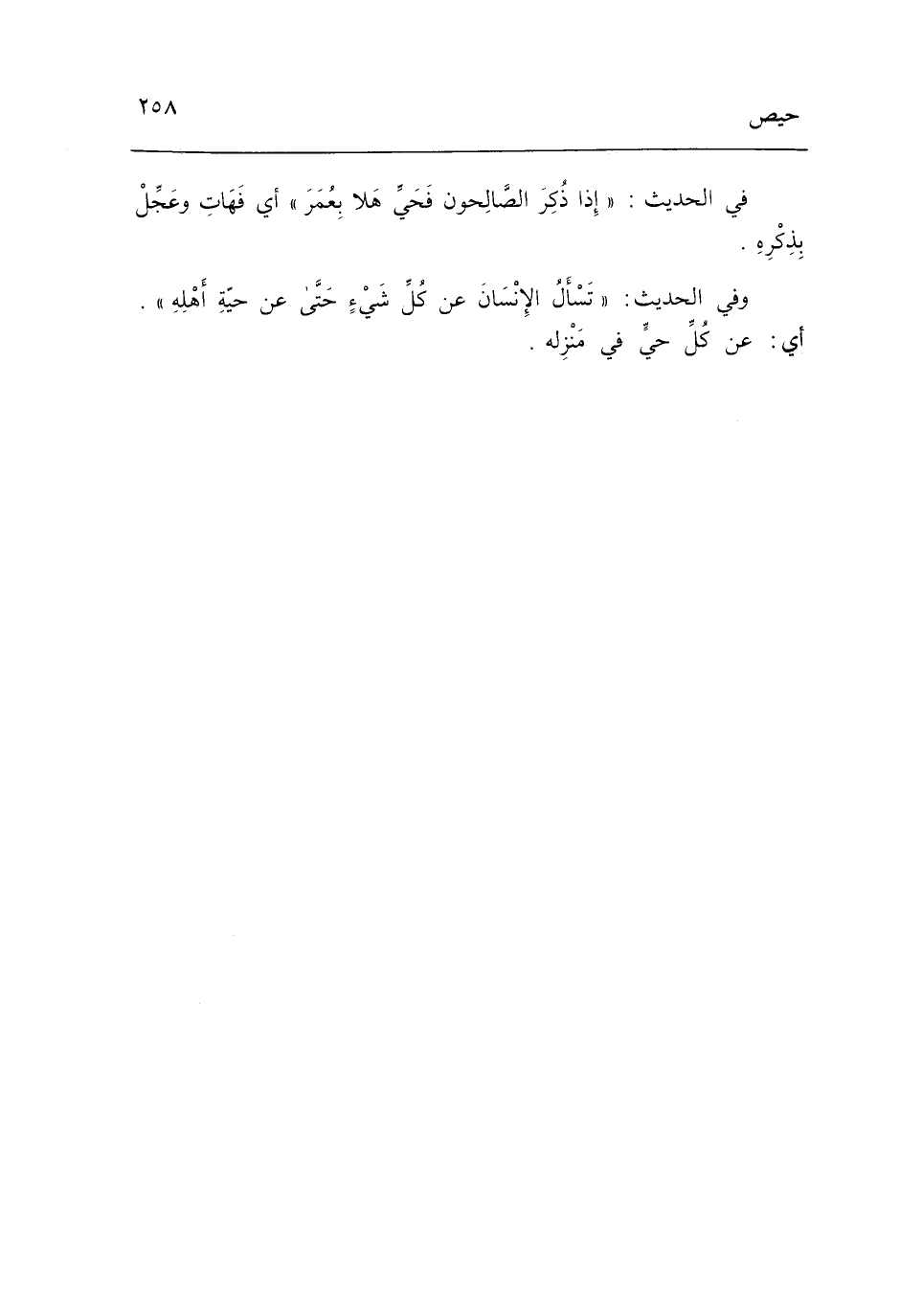 فِي الحَدِيث إِذا ذكر الصالحون فحي هلا بعمر أَي فهات وَعجل بِذكرِهِ.