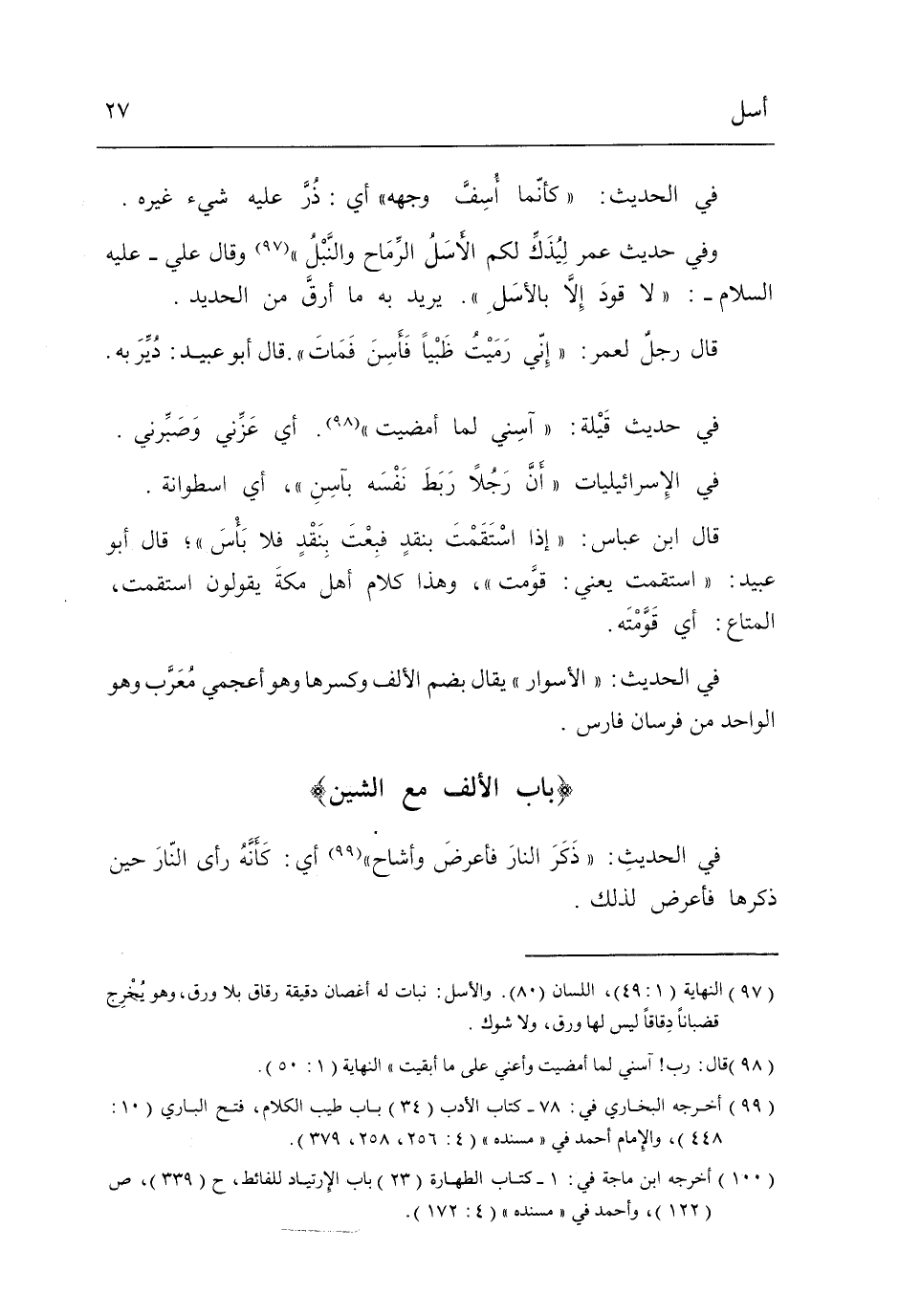 وَفِي حَدِيث عمر ليذك لكم الأسل الرماح والنبل وَقَالَ عَلّي عَلَيْهِ السَّلَام لَا قَود إِلَّا بالأسل يُرِيد بِهِ مَا أرق من الحَدِيث.