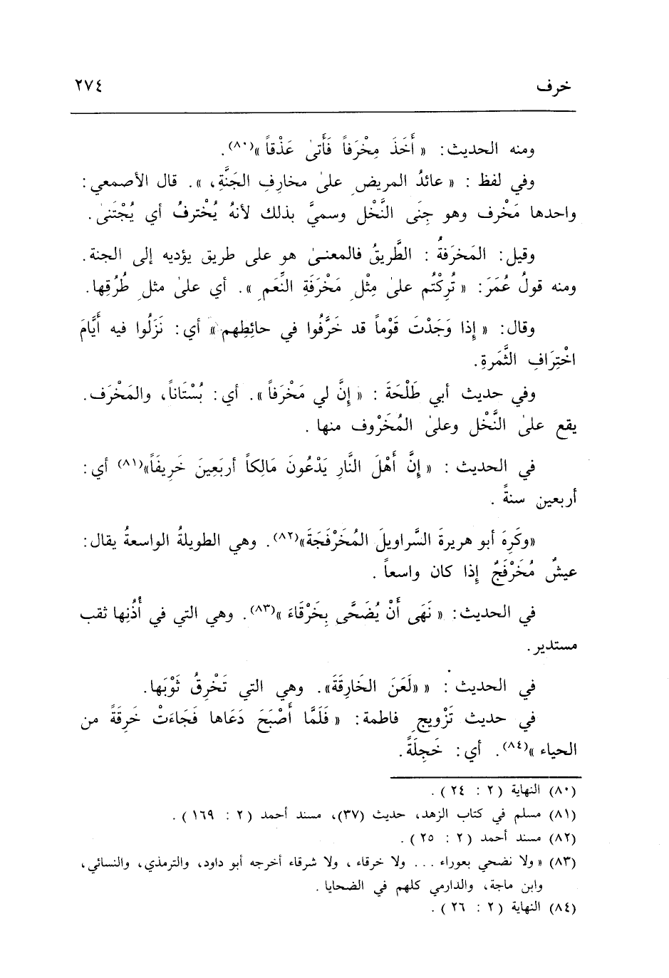 وَقيل المخرفة الطَّرِيق فَالْمَعْنَى هُوَ عَلَى طَرِيق يُؤَدِّيه إِلَى الْجنَّة وَمِنْه قَول عمر تركْتُم عَلَى مثل مخرفة النعم أَي عَلَى مثل طرقها.