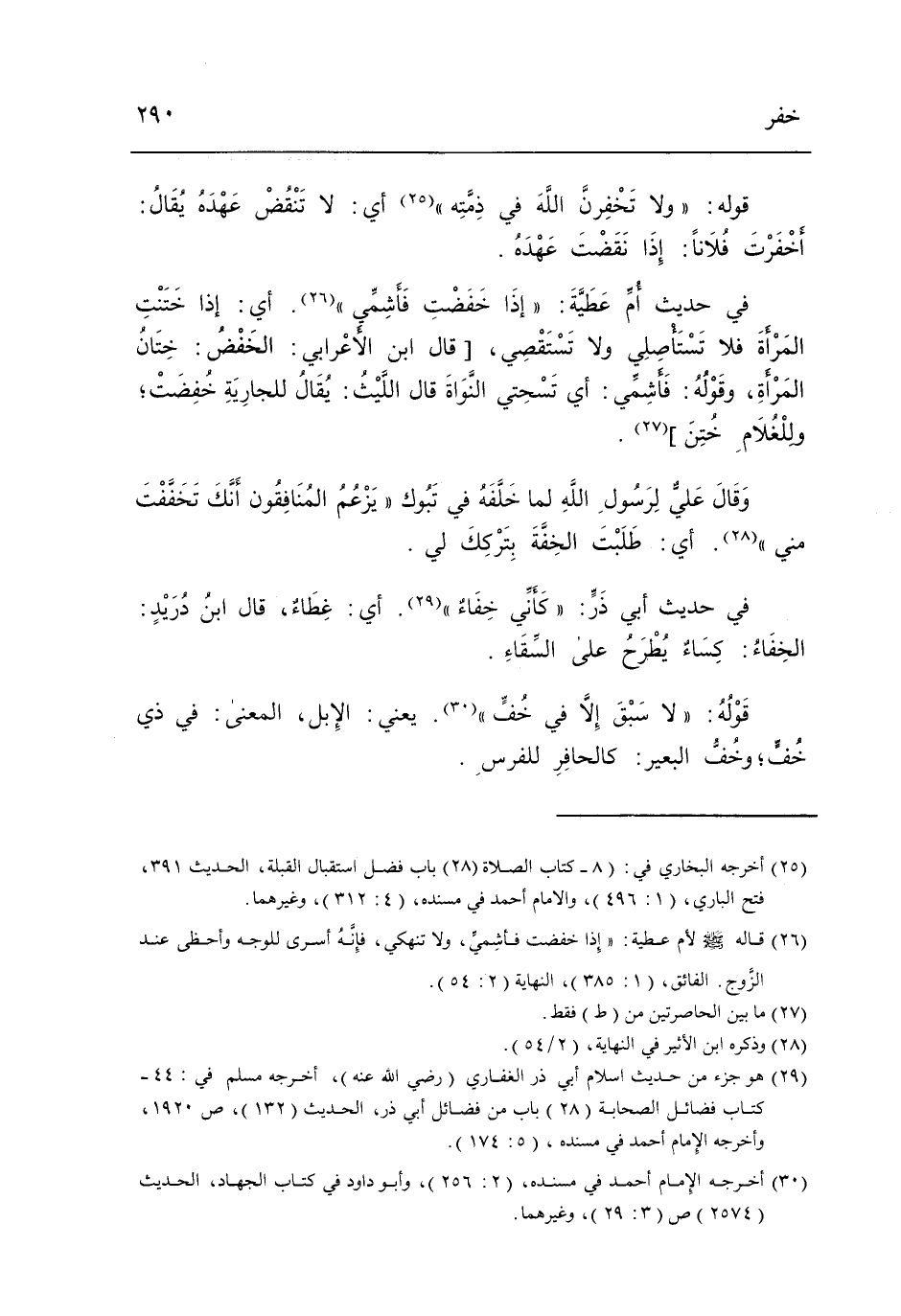 قَوْله وَلَا تخفرن الله فِي ذمَّته أَي لَا تنقض عَهده يُقَال أخفرت فلَانا إِذا نقضت عَهده.