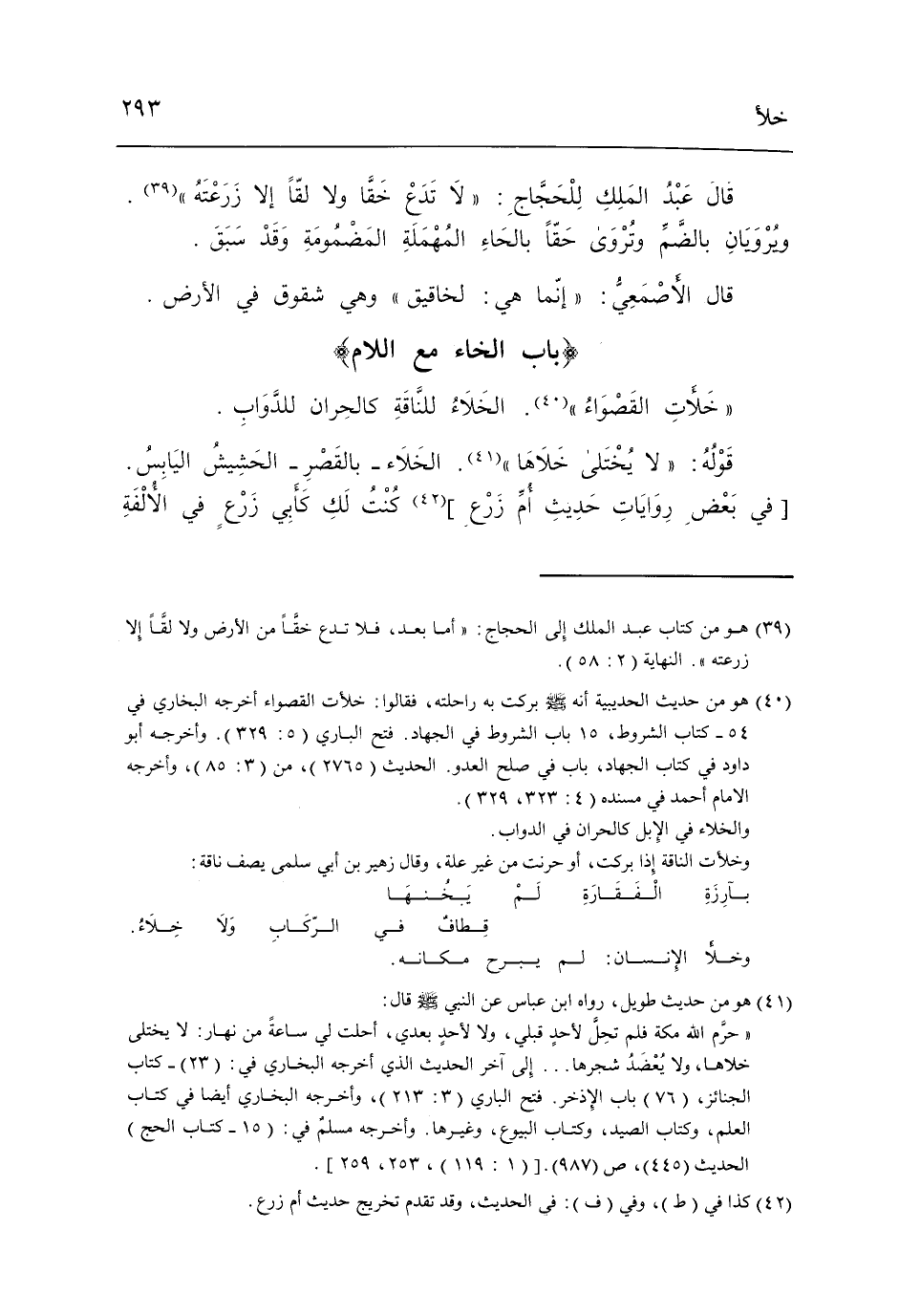 قَالَ الْأَصْمَعِي إِنَّمَا هِيَ لخاقيق وَهِي شقوق فِي الأَرْض.