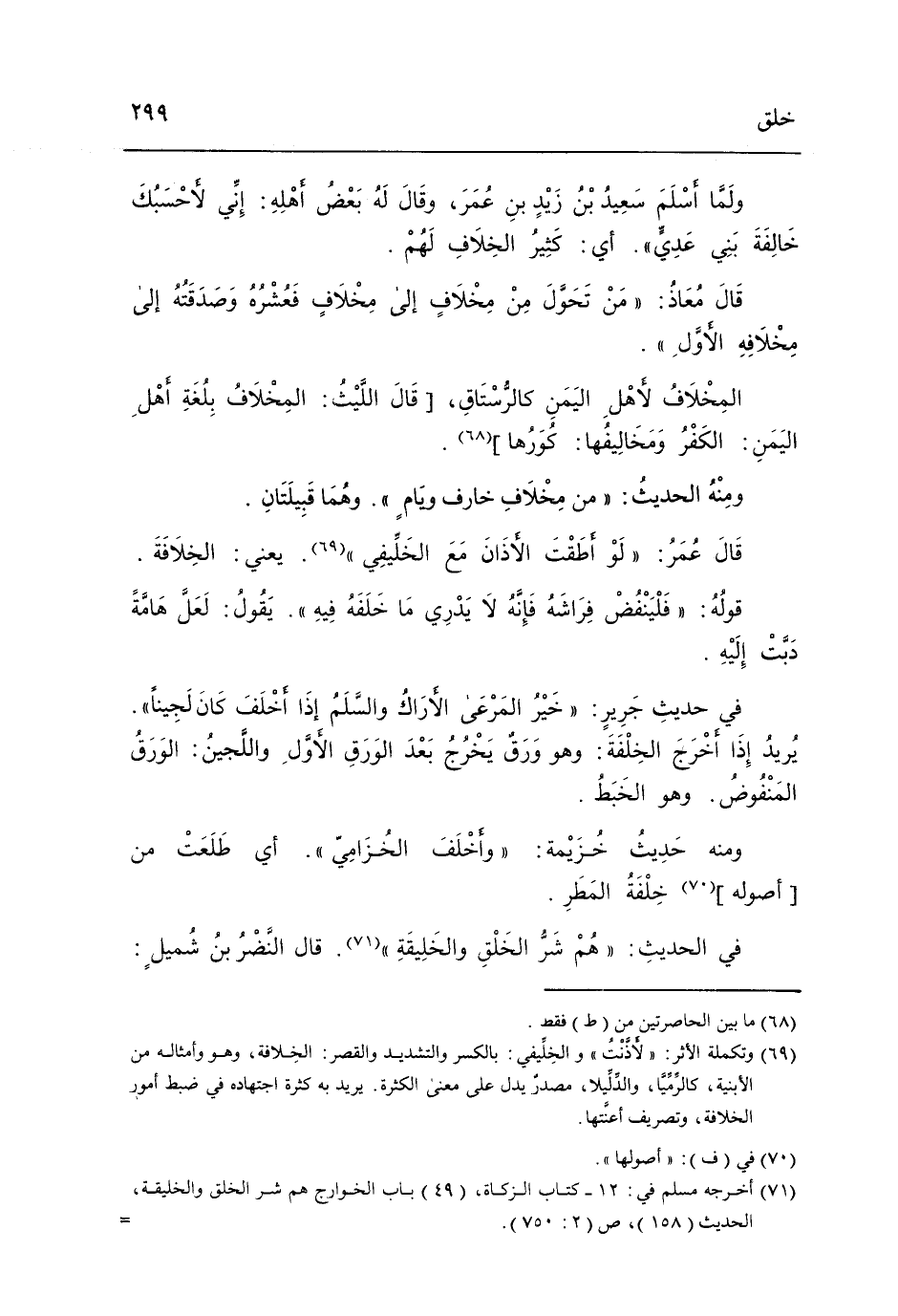 فِي الحَدِيث هم شَرّ الْخلق والخليقة قَالَ النَّضر بن شُمَيْل