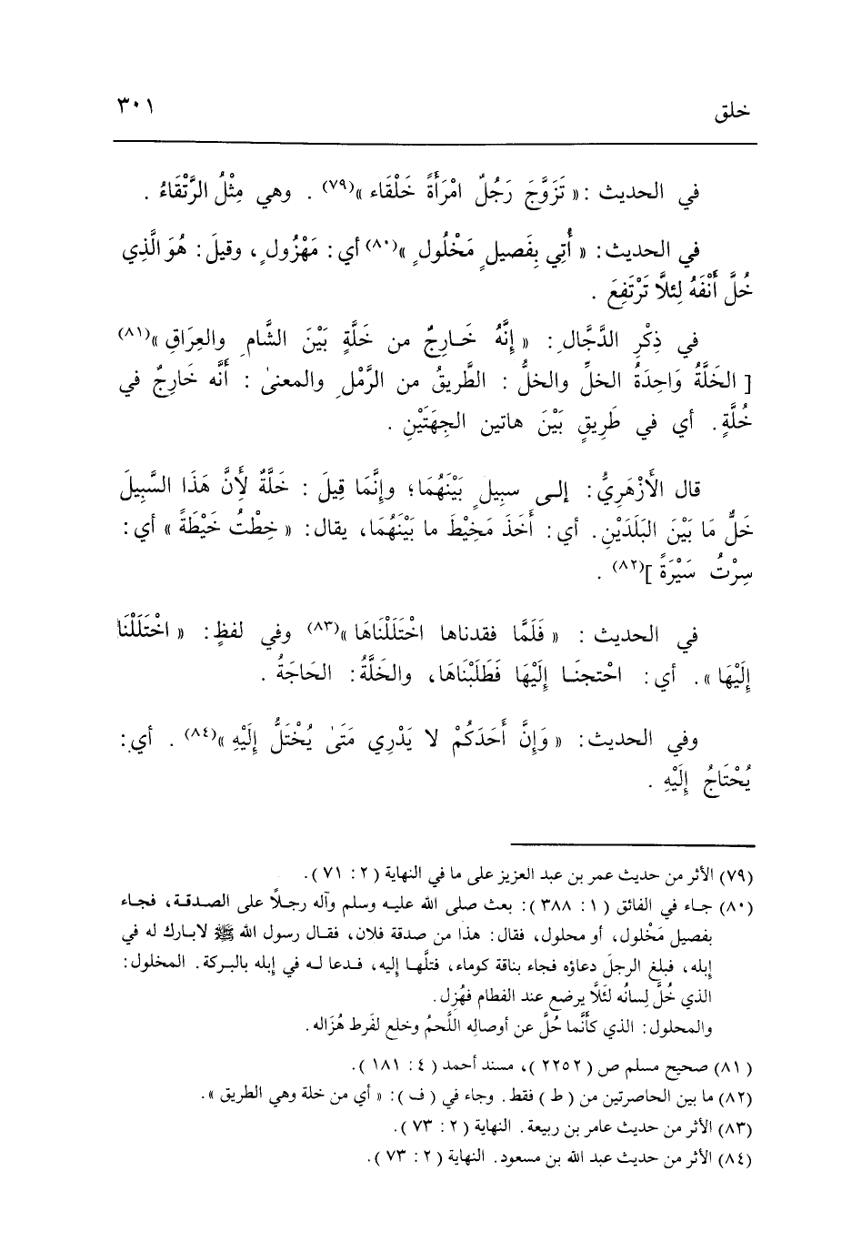 قَالَ الْأَزْهَرِي إِلَى سَبِيل بَينهمَا وَإِنَّمَا قيل خلة لِأَن هَذَا السَّبِيل خل مَا بَين البلدين أَي أَخذ مخيط مَا بَينهمَا يُقَال خطت خيطة أَي سرت سيرة.