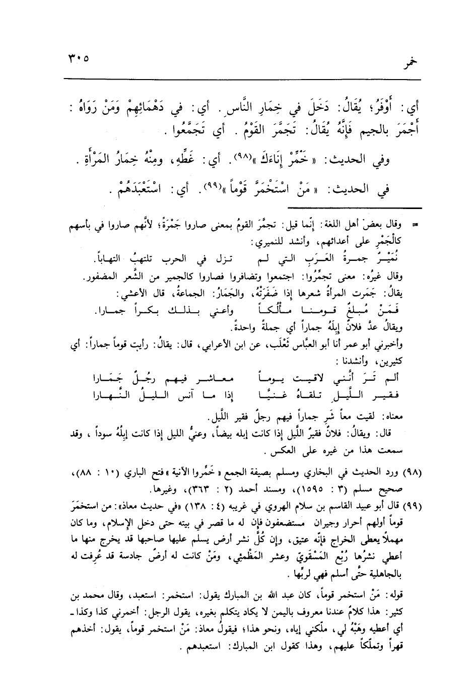 فِي الحَدِيث من استخمر قوما أَي استعبدهم.