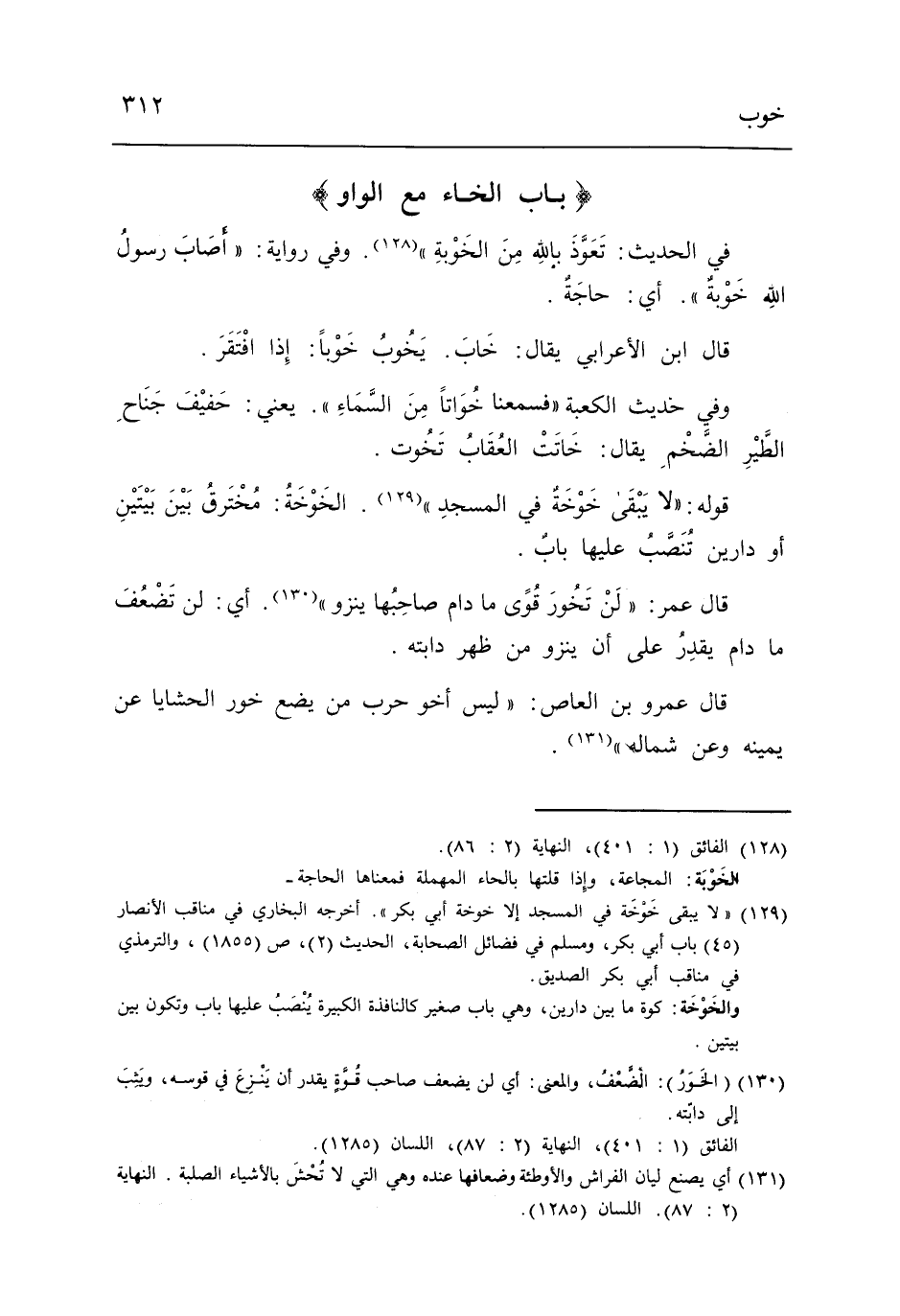 فِي الحَدِيث تعوذ بِاللَّه من الخوبة وَفِي رِوَايَة أصَاب رَسُول الله خوبة أَي حَاجَة.