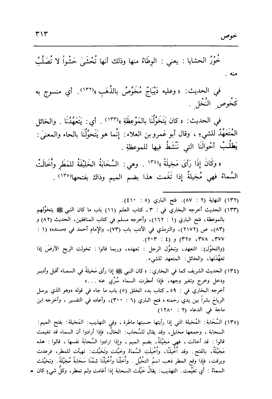 وَكَانَ إِذا رَأَى مخيلة وَهِي السحابة الْخَلِيفَة للمطر وأخالت السَّمَاء فَهِيَ مخيلة إِذا تغمت هَذَا بِضَم الْمِيم وَذَاكَ بِفَتْحِهَا.