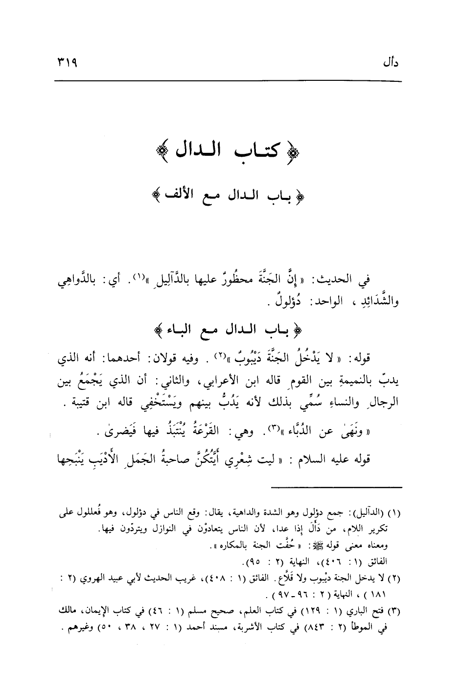 فِي الحَدِيث إِن الْجنَّة مَحْظُور عَلَيْهَا بالدآليل أَي بالدواهي والشدائد الْوَاحِد دؤلول.