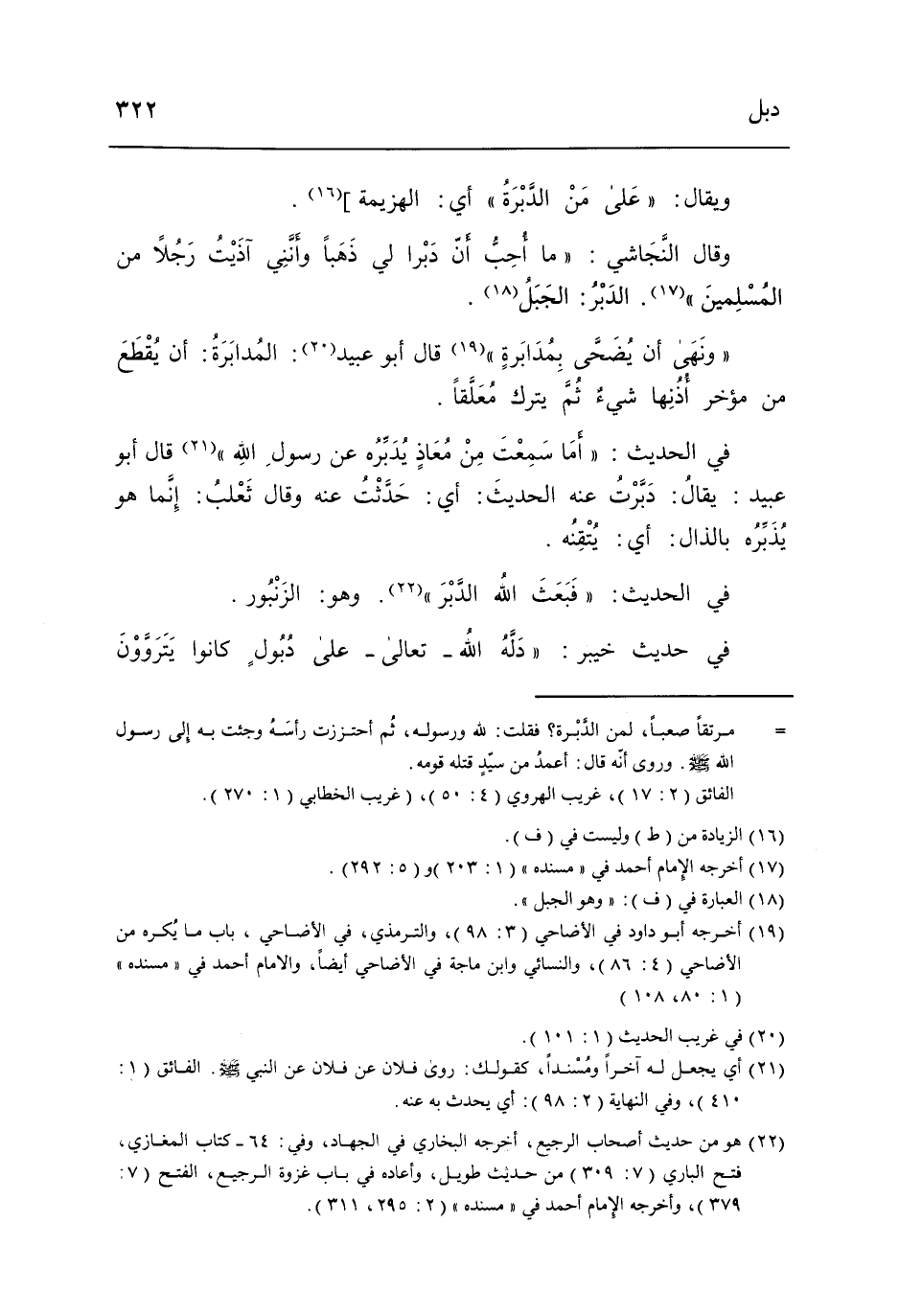 وَقَالَ النَّجَاشِيّ مَا أحب أَن دبرا لي ذَهَبا وأنني آذيت رجلا من الْمُسلمين الدبر الْجَبَل.