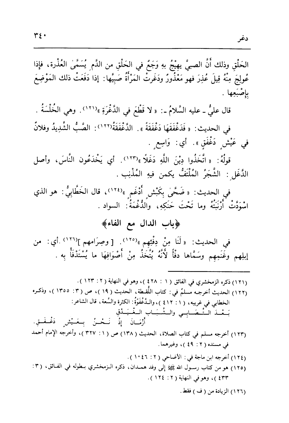الْحلق وَذَلِكَ أَن الصَّبِي يهيج بِهِ وجع فِي الْحلق من الدَّم يُسمى الْعذرَة فَإِذا عولج مِنْهُ قيل عذر فَهُوَ مَعْذُور ودغرت الْمَرْأَة صبيها إِذا دفعت ذل الْموضع بإصبعها.