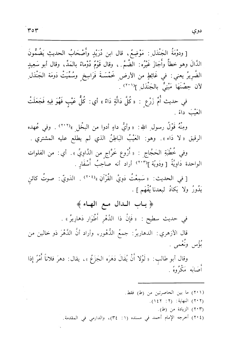 وَفِي خطْبَة الْحجَّاج أروع خراج من الداوي أَي من الفلوات الْوَاحِدَة داوية ودوية أَرَادَ صَاحب أسفار.