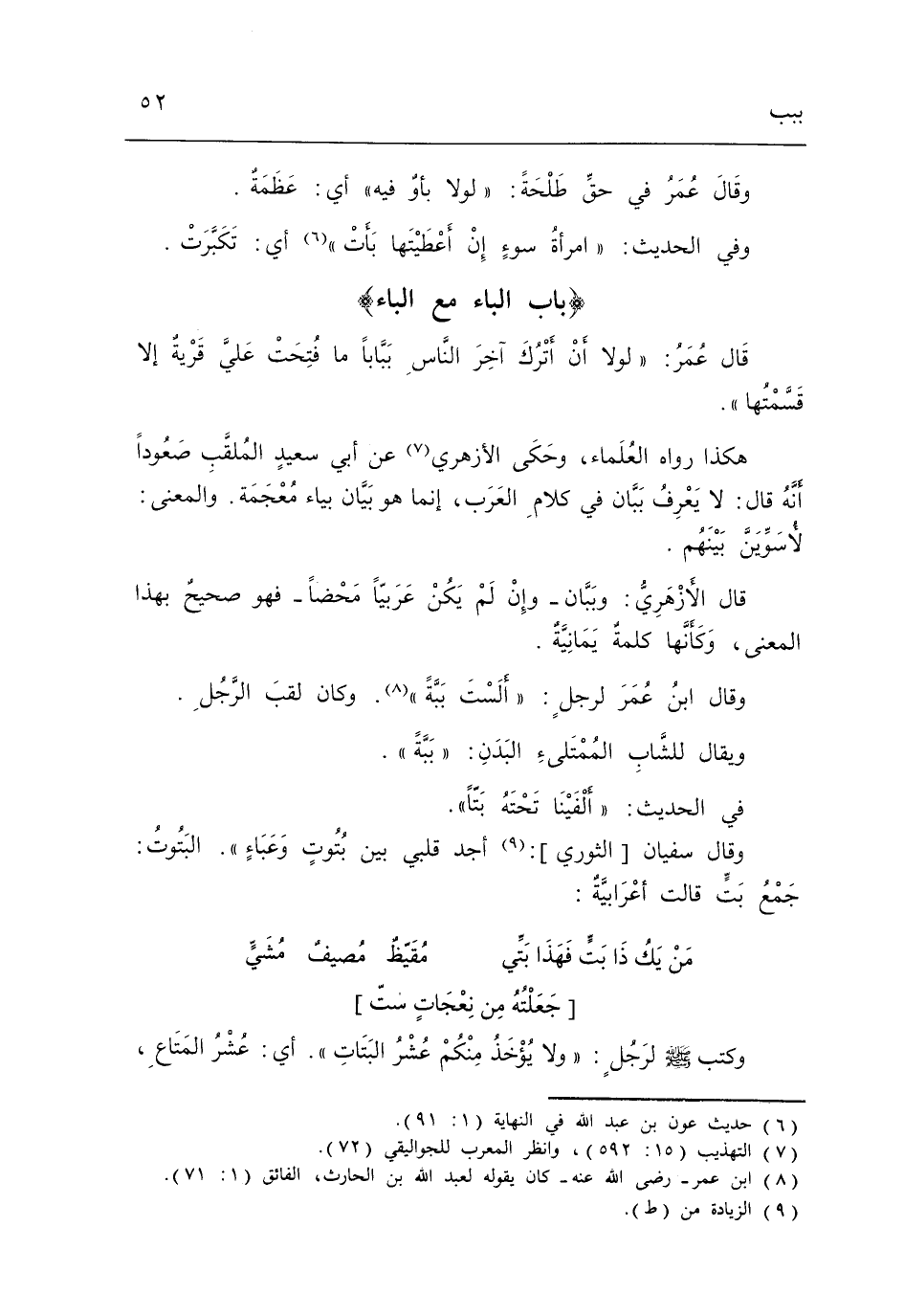 فِي الحَدِيث ألفينا تَحْتَهُ بتا.
