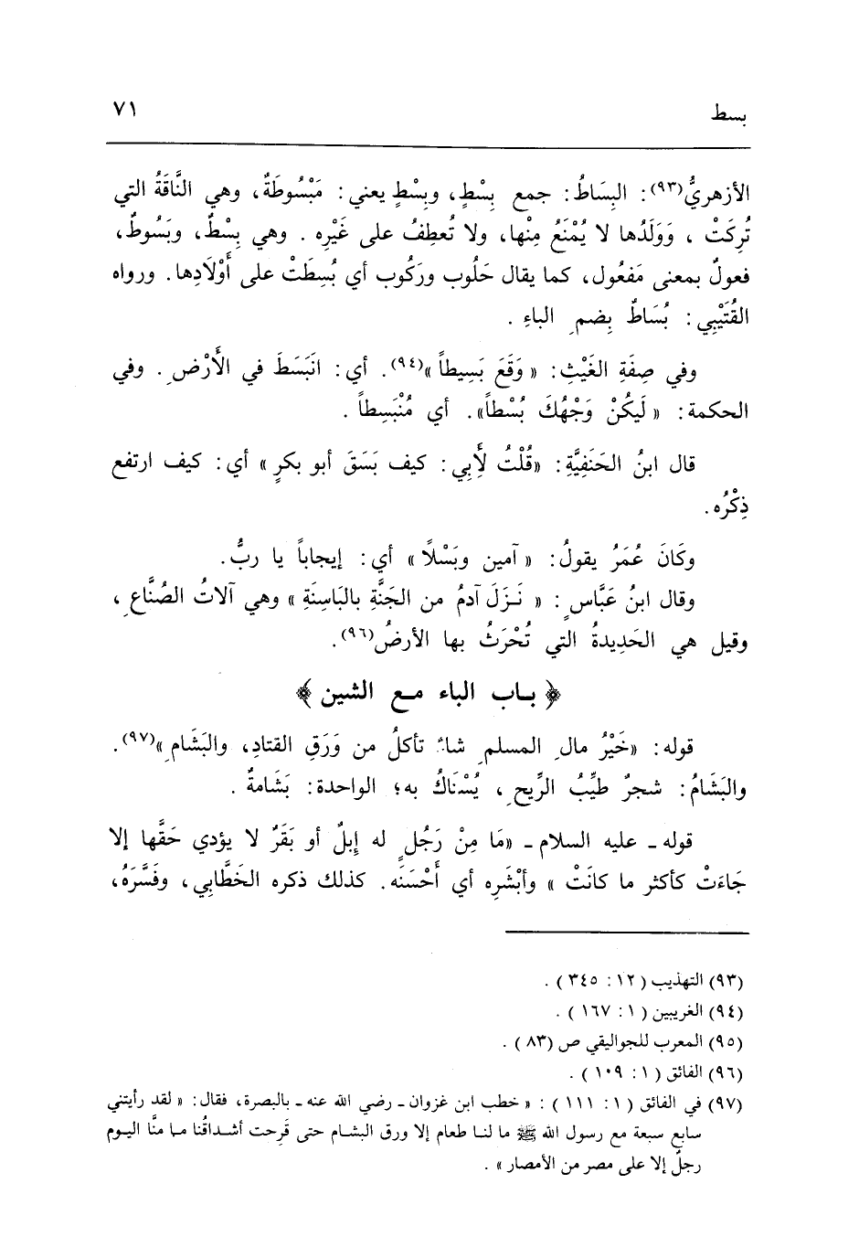 بَاب الْبَاء مَعَ الشين