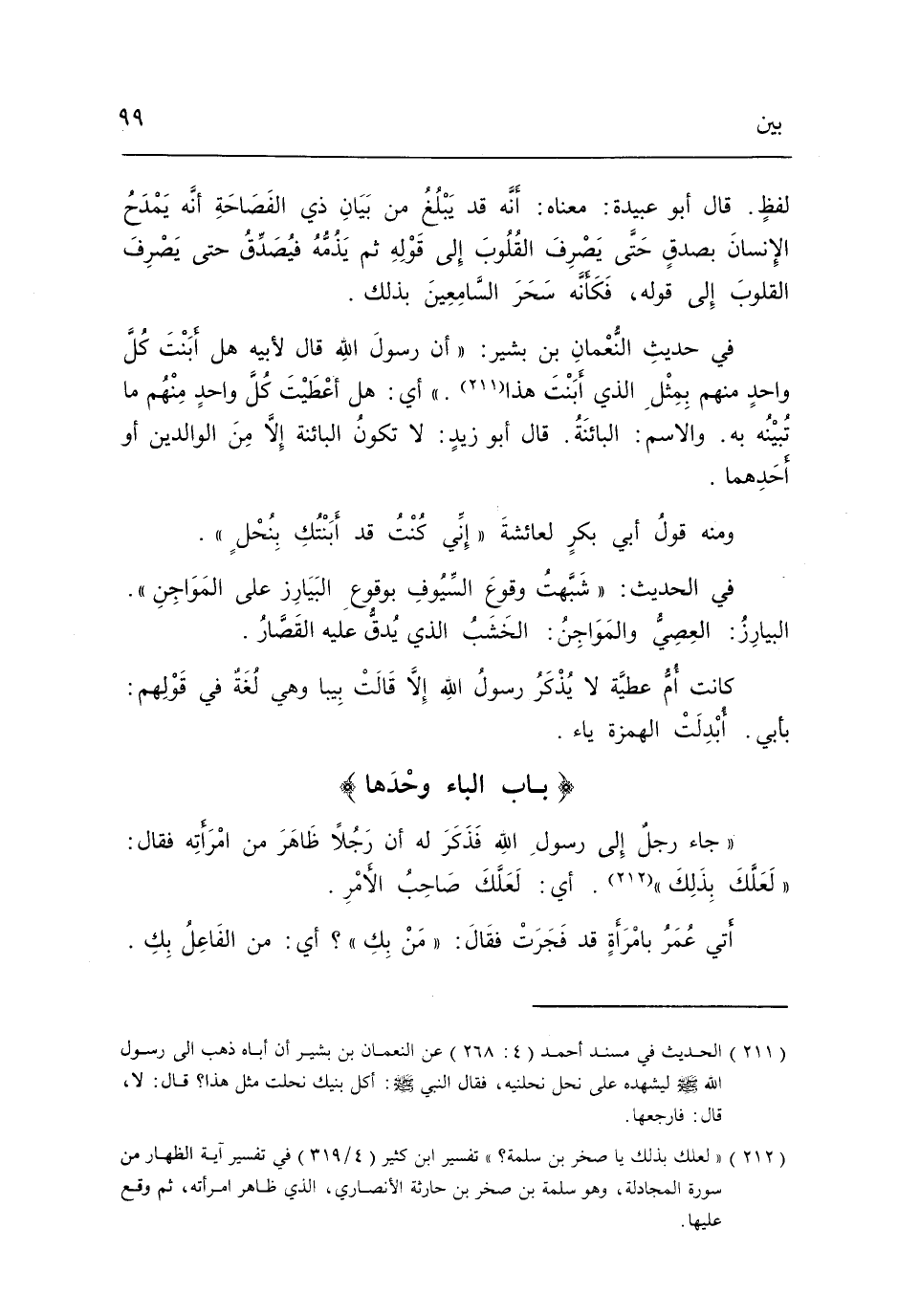 لفظ قَالَ أَبُو عُبَيْدَة مَعْنَاهُ أَنه قد يبلغ من بَيَان ذِي الفصاحة أَنه يمدح الْإِنْسَان بِصدق حَتَّى يصرف الْقُلُوب إِلَى قَوْله ثمَّ يذمه فَيصدق حَتَّى يصرف الْقُلُوب إِلَى قَوْله فَكَأَنَّهُ سحر السامعين بذلك.