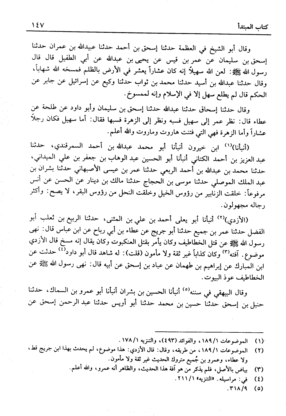 وَقَالَ حَدَّثَنَا إِسْحَاق حَدَّثَنَا عَبْد الله حَدَّثَنَا إِسْحَاق بْن سُلَيْمَان وَأَبُو دَاوُد عَن طَلْحَة عَن عَطاء قَالَ: نظر عُمَر إِلَى سُهَيْل فَسَبهُ وَنظر إِلَى الزهرة فسبها فَقَالَ: أما سُهَيْل فَكَانَ رجلا عشارًا وأمّا الزهرة فَهِيَ الَّتِي فتنت هاروت وماروت وَالله أعلم.