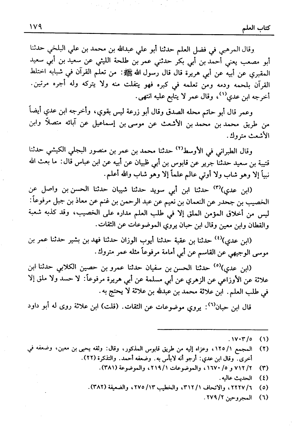 (ابْن عدي) حَدَّثَنَا الْحَسَن بْن سُفْيَان حَدَّثَنَا عَمْرو بْن حُصَيْن الْكلابِي حَدَّثَنَا ابْن علاثة عَن الْأَوْزَاعِيّ عَن الزُّهْرِيّ عَن أَبِي مسلمة عَنْ أَبِي هُرَيْرَةَ مَرْفُوعا: لَا حَسَدَ وَلا مَلَقَ إِلا فِي طَلَبِ الْعِلْمِ.