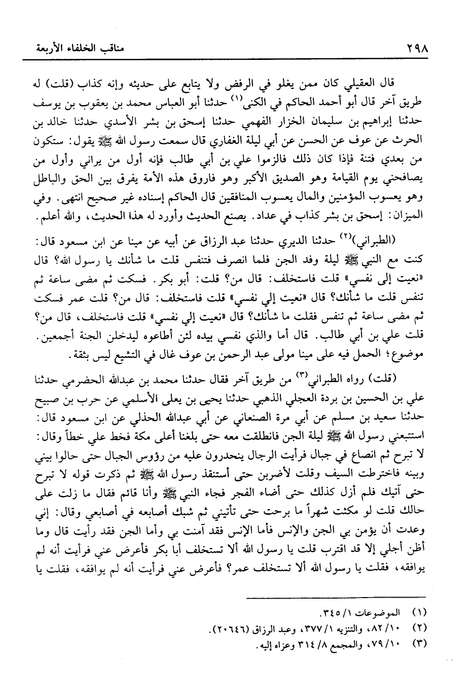 (الطَّبَرَانِيّ) حَدَّثَنَا الديري حَدَّثَنَا عَبْد الرَّزَّاق عَن أَبِيهِ عَن مينا عَنِ ابْنِ مَسْعُودٍ قَالَ: كُنْتُ مَعَ النَّبِيِّ لَيْلَةَ وَفْدِ الْجِنِّ فَلَمَّا انْصَرَفَ فَتَنَفَّسَ قُلْتُ مَا شَأْنُكَ يَا رَسُولَ اللَّهِ؟ قَالَ " نُعِيَتْ إِلَيَّ نَفْسِي " قُلْتُ فَاسْتَخْلِفْ: قَالَ مَنْ؟ قلت: أَبُو بكر.