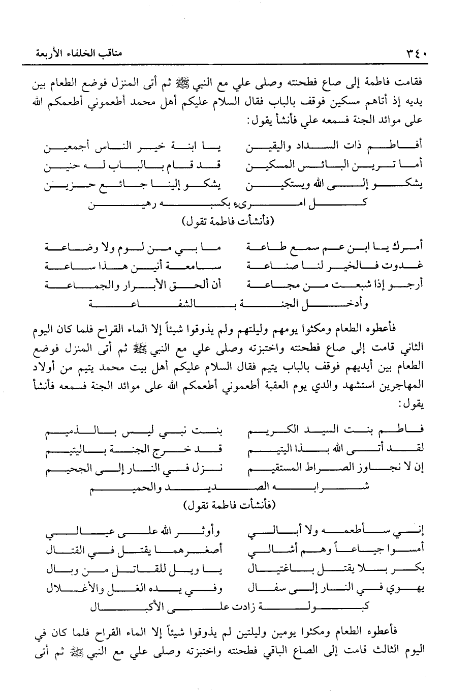 (أفاطمُ ذَات السداد وَالْيَقِين ... يَا ابْنَة خير النَّاس أَجْمَعِينَ)