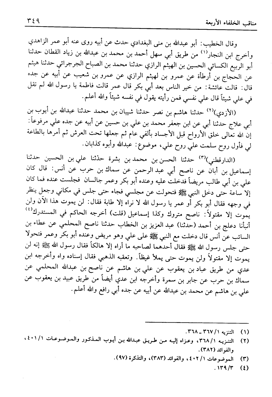 وَقَالَ الْخَطِيب: أَبُو عَبْد الله بْن منى الْبَغْدَادِيّ حَدَّث عَن أَبِيهِ روى عَنْهُ أَبُو عُمَر الزَّاهدِيّ وَأخرج ابْن النجار من طَرِيق أبي سهل أَحْمَد بْن مُحَمَّد بْن عَبْد الله بْن زِيَاد الْقطَّان حَدَّثَنَا أَبُو الرّبيع الْكسَائي الْحُسَيْن بْن الْهَيْثَم الرَّازِيّ حَدَّثَنَا مُحَمَّد بْن الصَّباح الجرجرائي حَدَّثَنَا هَيْثَم عَن الْحجَّاج بْن أَرْطَأَة عَن عَمْرو بن لهيثم الرَّازِيّ عَنْ عَمْرِو بْنِ شُعَيْبٍ عَن أَبِيهِ عَن جدِّه قَالَ: قَالَتْ عَائِشَةَ: مَنْ خَيْرُ النَّاسِ بَعْدَ أَبِي بَكْرٍ قَالَ عُمَرُ قَالَتْ فَاطِمَةُ يَا رَسُولَ اللَّهِ لَمْ تَقُلْ فِي عَلِيٍّ شَيْئًا قَالَ عَلِيٌّ نَفْسِي فَمَنْ رَأَيْتِهِ يَقُولُ فِي نَفْسِهِ شَيْئًا وَالله أعلم.