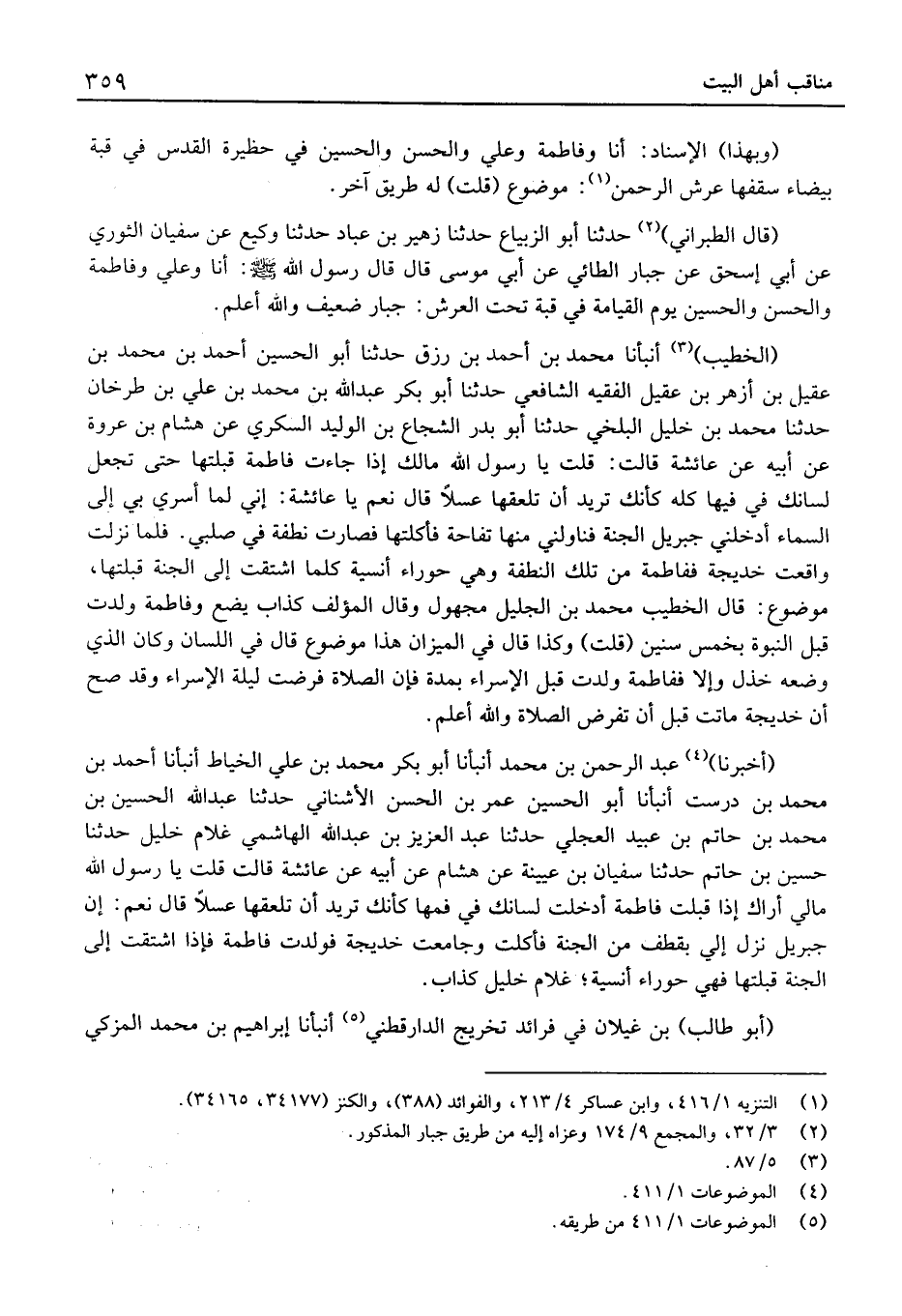 (الْخَطِيب) أَنْبَأنَا مُحَمَّد بْن أَحْمَد بْن رزق حَدَّثَنَا أَبُو الْحُسَيْن أَحْمَد بْن مُحَمَّد بْن عقيل بْن أَزْهَر بْن عقيل الْفَقِيه الشَّافِعِي حَدَّثَنَا أَبُو بَكْر عَبْد الله بْن مُحَمَّد بْن عَلِيّ بْن طرخان حَدَّثَنَا مُحَمَّد بْن خَلِيل الْبَلْخِي حَدَّثَنَا أَبُو بدر الشجاع بْن الْوَلِيد السكرِي عَن هِشَام بْن عُرْوَة عَن أَبِيهِ عَن عَائِشَة قَالَ: قلتُ يَا رَسُول الله مَالك إِذَا جَاءَتْ فَاطِمَةُ قَبَّلْتَهَا حَتَّى تَجْعَلَ لِسَانَكَ فِي فِيهَا كُلِّهِ كَأَنَّكَ تُرِيدُ أَنْ تَلْعَقَهَا عَسَلًا قَالَ نَعَمْ يَا عَائِشَةُ: إِنِّي لَمَّا أُسْرِيَ بِي إِلَى السَّمَاءِ أَدْخَلَنِي جِبْرِيلُ الْجَنَّةَ فَنَاوَلَنِي مِنْهَا تُفَّاحَةً فَأَكَلْتُهَا فَصَارَتْ نُطْفَةً فِي صُلْبِي.