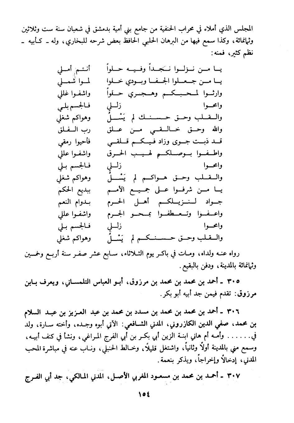 307 - أحمد بن محمد بن مسعود المغربي الأصل المدني المالكي جد أبي الفرج