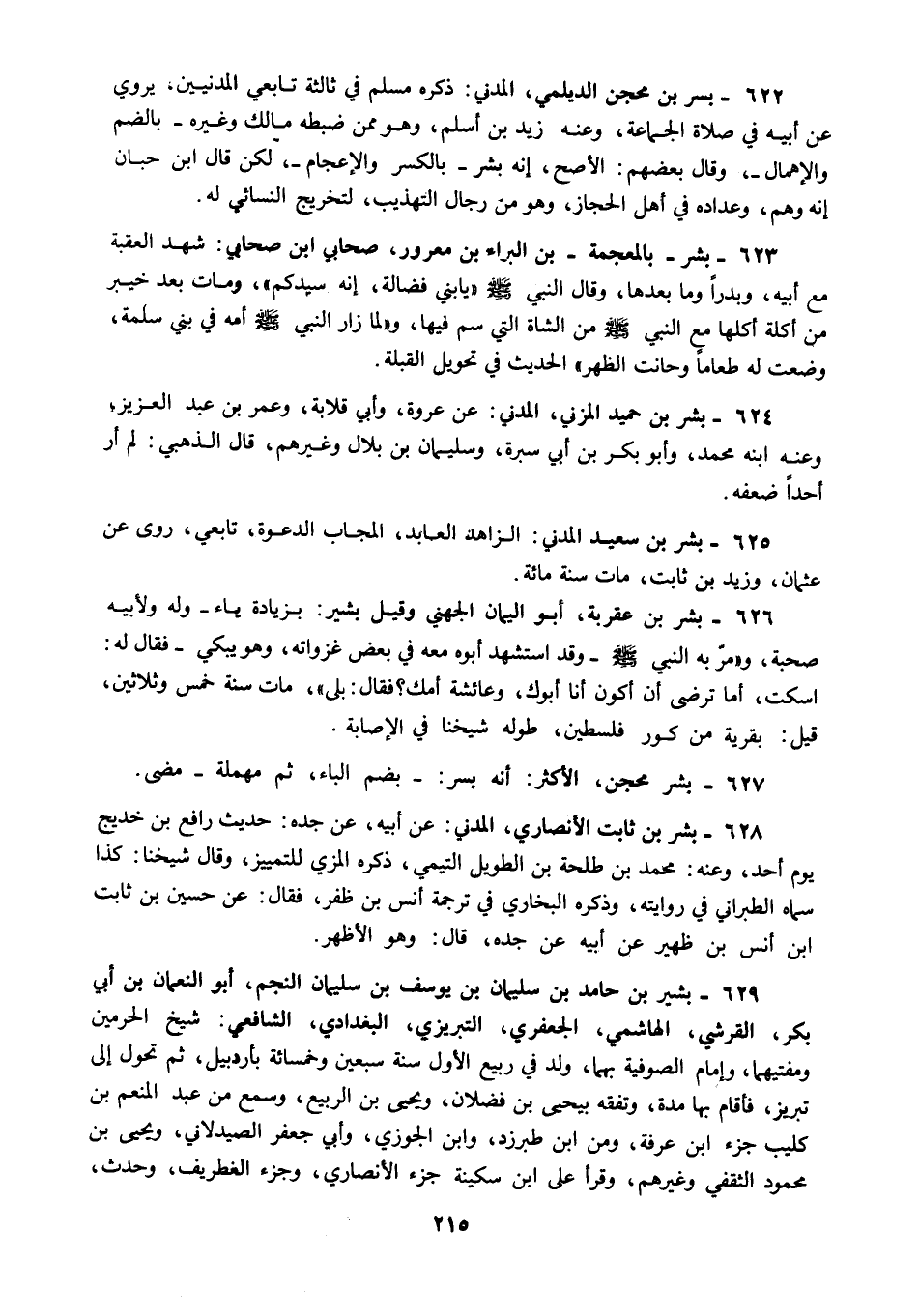 625 - بشر بن سعيد المدني الزاهد العابد المجاب الدعوة تابعي روى عن عثمان وزيد بن ثابت مات سنة مائة.