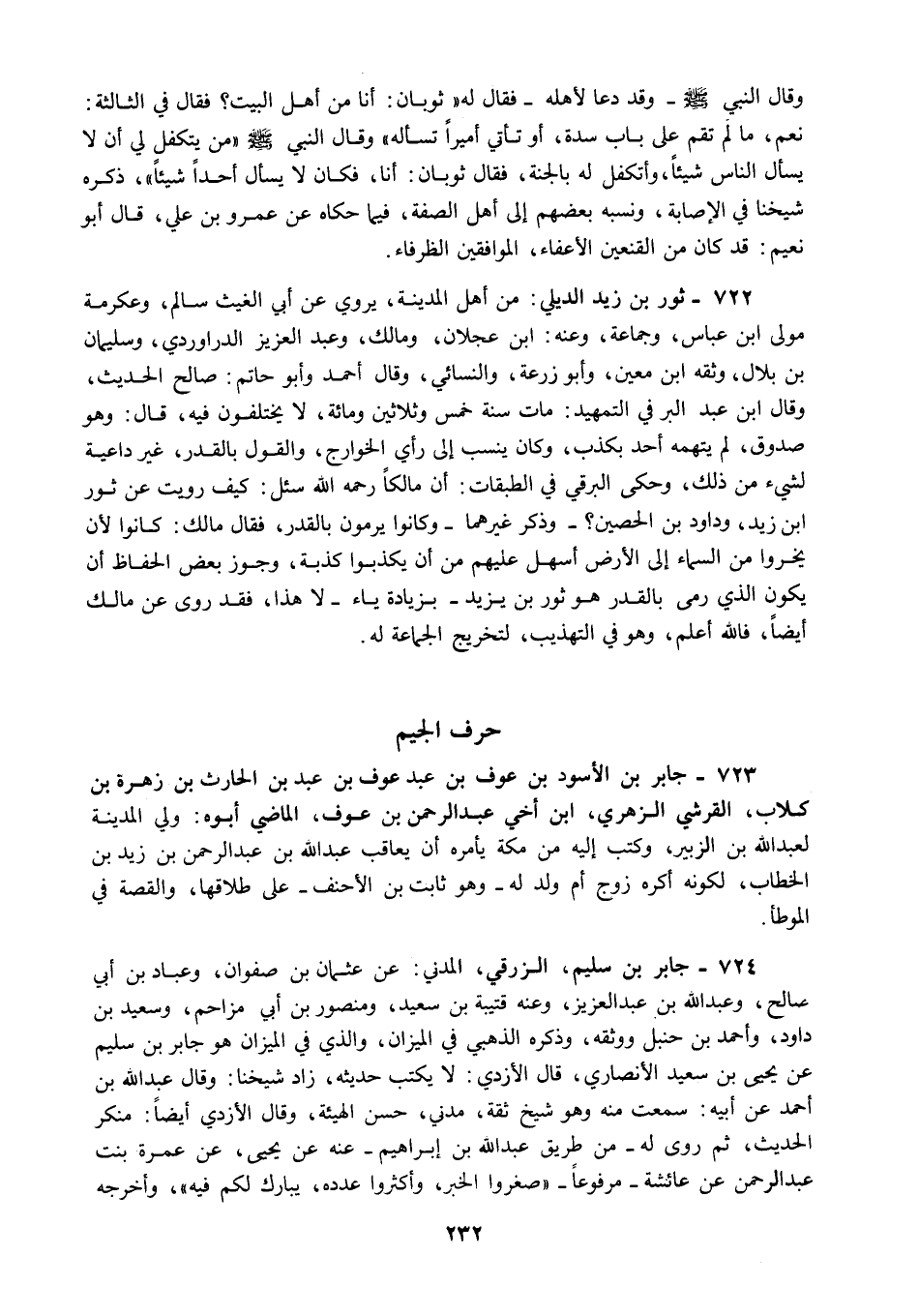 724 - جابر بن سليم الزرقي المدني عن عثمان بن صفوان وعباد بن أبي صالح وعبد الله بن عبد العزيز وعنه قتيبة بن سعيد ومنصور بن أبي مزاحم وسعيد بن داود وأحمد بن حنبل ووثقه وذكره الذهبي في الميزان والذي في الميزان هو جابر بن سليم عن يحيى بن سعيد الأنصاري قال الأزدي لا يكتب حديثه زاد شيخنا وقال عبد الله بن أحمد عن أبيه سمعت منه وهو شيخ ثقة مدني حسن الهيئة وقال الأزدي أيضا منكر الحديث ثم روى له من طريق عبد الله بن إبراهيم عنه عن يحيى عن عمرة بنت عبد الرحمن عن عائشة مرفوعا "صغروا الخبر وأكثروا عدده يبارك لكم فيه" وأخرجه