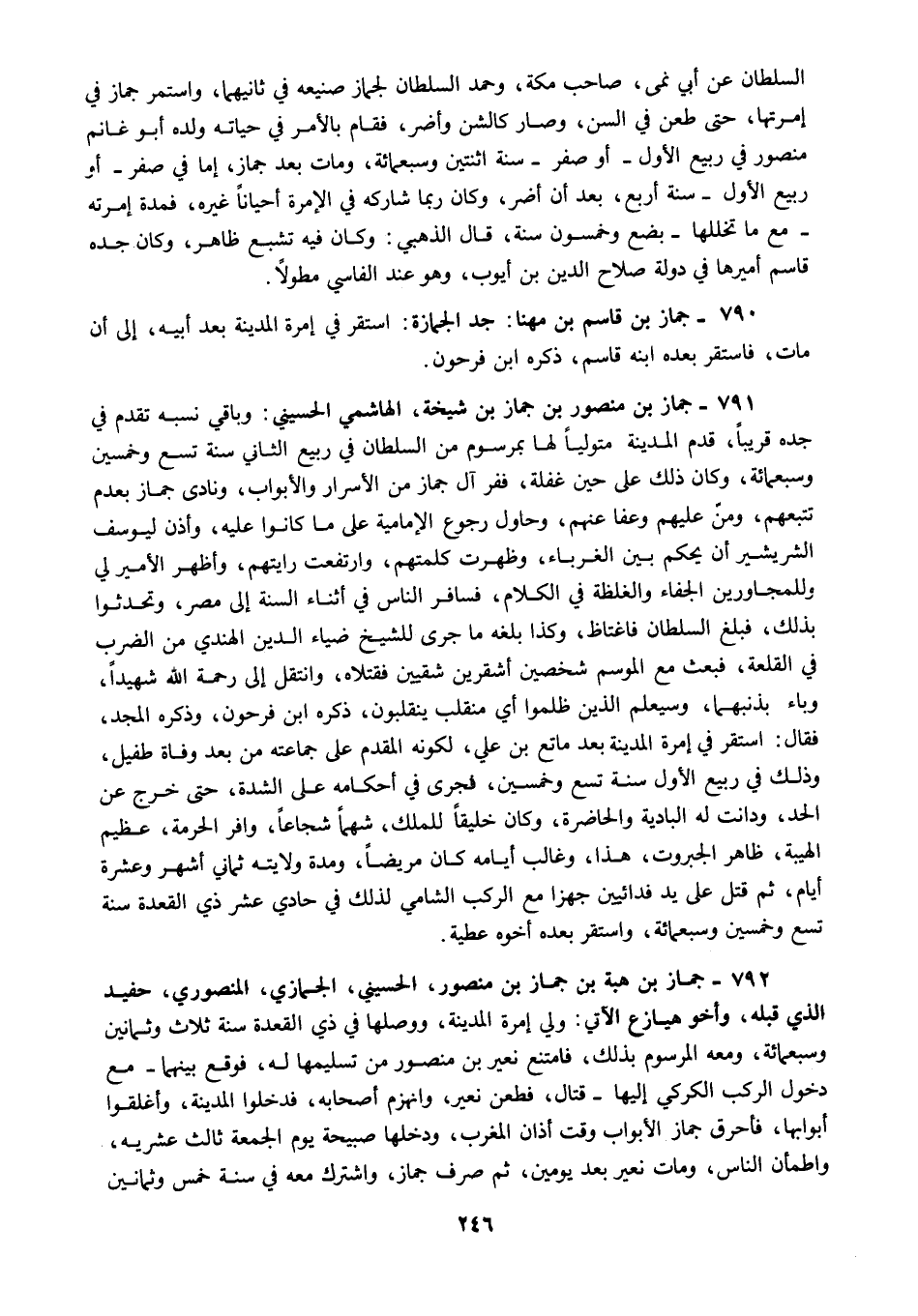 790 - جماز بن قاسم بن مهنا جد الجمازة استقر في إمرة المدينة بعد أبيه إلى أن مات فاستقر بعده ابنه قاسم ذكره ابن فرحون.
