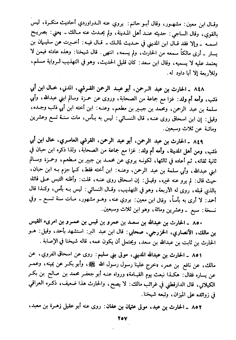 852 - الحارث بن عبد مولى عثمان بن عفان روى عنه أبو عقيل زهرة بن معبد