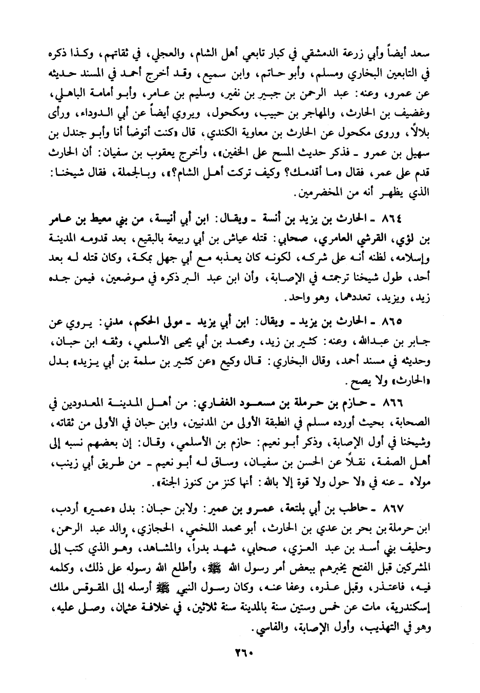 866 - حازم بن حرملة بن مسعود الغفاري من أهل المدينة المعدودين في الصحابة بحيث أورده مسلم في الطبقة الأولى من المدنيين وابن حبان في الأولى من ثقاته وشيخنا في أول الإصابة وذكر أبو نعيم حازم بن الأسلمي وقال إن بعضهم نسبه إلى أهل الصفة نقلا عن الحسن بن سفيان وساق له أبو نعيم من طريق أبي زينب مولاه عنه في لا حول ولا قوة إلا بالله أنها كنز من كنوز الجنة.