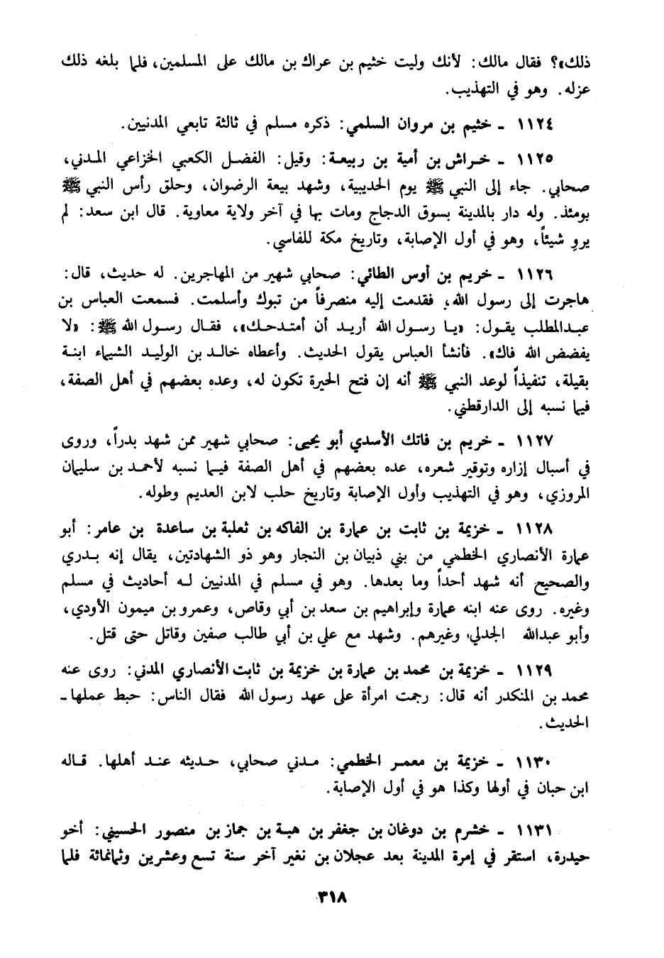 1126 - خريم بن أوس الطائي صحابي شهير من المهاجرين له حديث قال هاجرت إلى رسول الله فقدمت إليه منصرفا من تبوك وأسلمت فسمعت العباس بن عبد المطلب يقول يا رسول الله أريد أن أمتدحك فقال رسول الله صلى الله عليه وسلم "لا يفضض الله فاك" فأنشأ العباس يقول الحديث وأعطاه خالد بن الوليد الشيماء ابنة بقيلة تنفيذا لوعد النبي صلى الله عليه وسلم أنه إن فتح الحيرة تكون له وعده بعضهم في أهل الصفة فيما نسبه إلى الدارقطني.