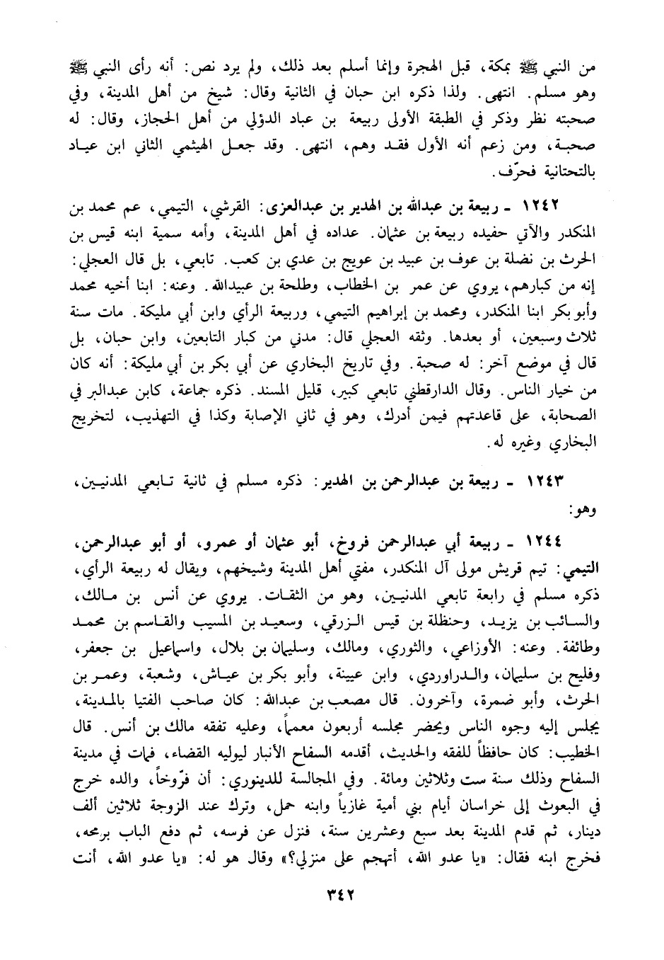 1243 - ربيعة بن عبد الرحمن بن الهدير ذكره مسلم في ثانية تابعي المدنيين وهو.