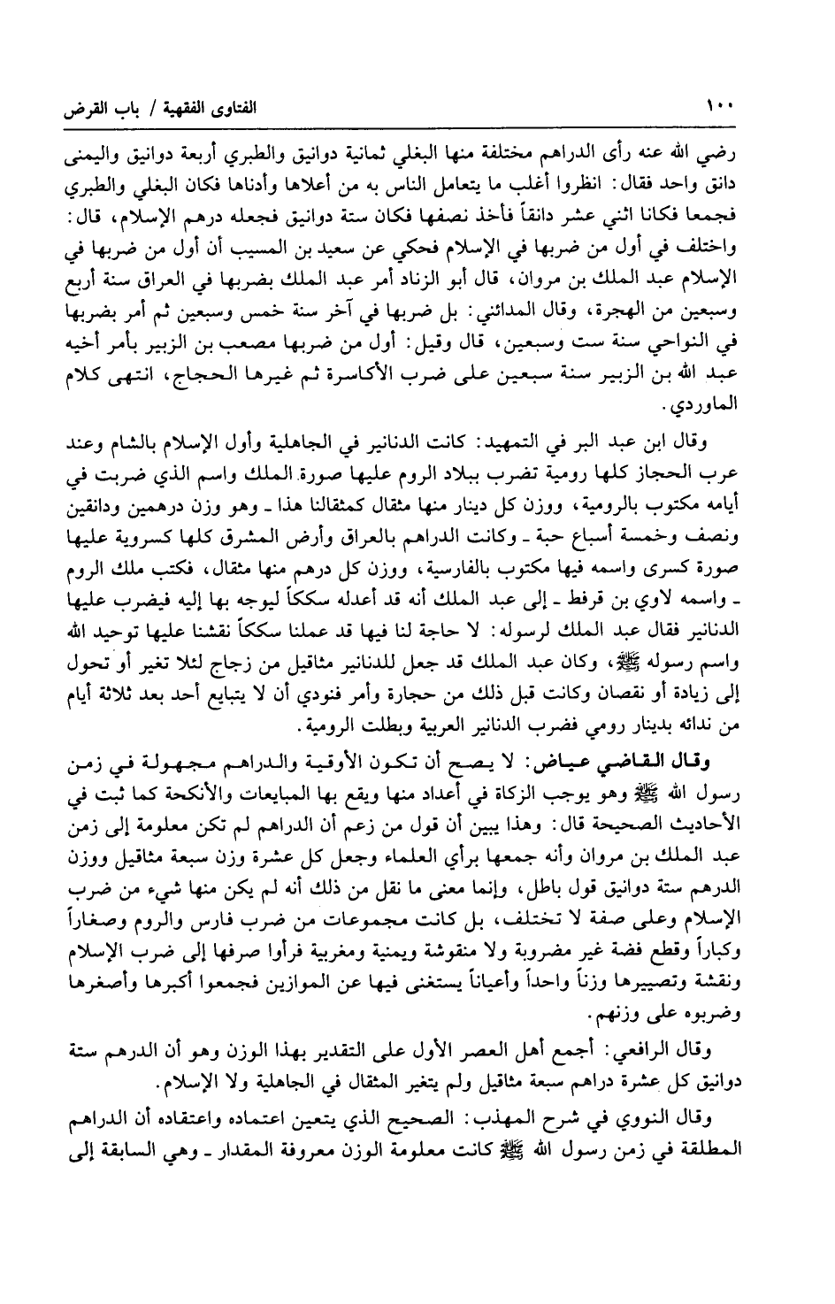 وقال النووي في شرح المهذب : الصحيح الذي يتعين اعتماده واعتقاده أن الدراهم المطلقة في زمن رسول الله صلى الله عليه وسلّم كانت معلومة الوزن معروفة المقدار وهي السابقة إلى