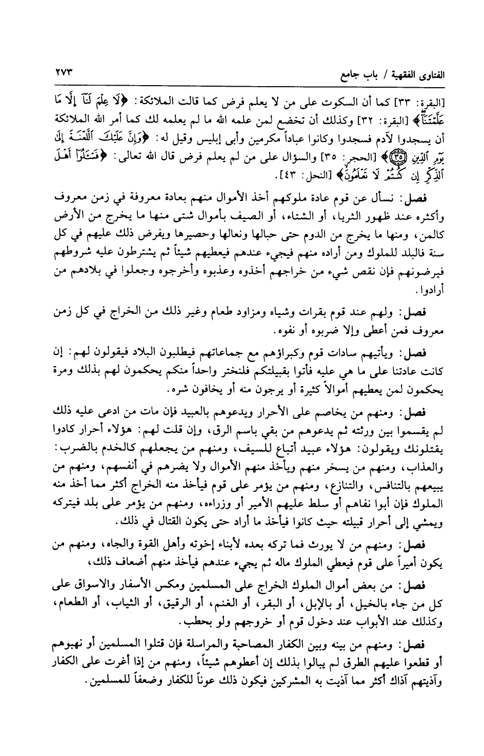 فصل : نسأل عن قوم عادة ملوكهم أخذ الأموال منهم بعادة معروفة في زمن معروف وأكثره عند ظهور الثريا ، أو الشتاء ، أو الصيف بأموال شتى منها ما يخرج من الأرض كالمن ، ومنها ما يخرج من الدوم حتى حبالها ونعالها وحصيرها ويفرض ذلك عليهم في كل سنة فالبلد للملوك ومن أراده منهم فيجىء عندهم فيعطيهم شيئاً ثم يشترطون عليه شروطهم فيرضونهم فإن نقص شيء من خراجهم أخذوه وعذبوه وأخرجوه وجعلوا في بلادهم من أرادوا.