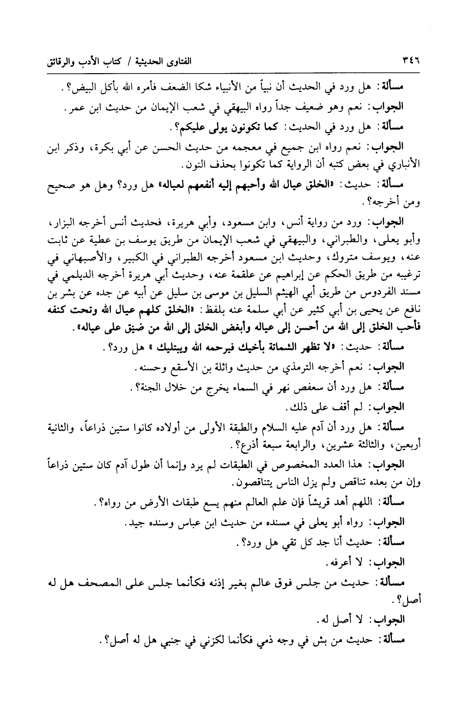 مسألة : حديث من جلس فوق عالم بغير إذنه فكأنما جلس على المصحف هل له أصل ؟.