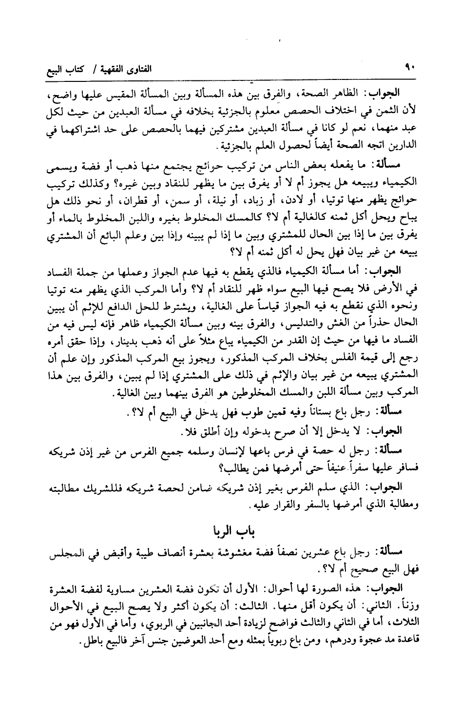 الجواب: أما مسألة الكيمياء فالذي يقطع به فيها عدم الجواز وعملها من جملة الفساد في الأرض فلا يصح فيها البيع سواء ظهر للنقاد أم لا؟ وأما المركب الذي يظهر منه توتيا ونحوه الذي نقطع به فيه الجواز قياساً على الغالية، ويشترط للحل الدافع للإثم أن يبين الحال حذراً من الغش والتدليس، والفرق بينه وبين مسألة الكيمياء ظاهر فإنه ليس فيه من الفساد ما فيها من حيث أن القدر من الكيمياء يباع مثلاً على أنه ذهب بدينار، وإذا حقق أمره رجع إلى قيمة الفلس بخلاف المركب المذكور، ويجوز بيع المركب المذكور وإن علم أن المشتري يبيعه من غير بيان والإثم في ذلك على المشتري إذا لم يبين، والفرق بين هذا المركب وبين مسألة اللبن والمسك المخلوطين هو الفرق بينهما وبين الغالية.
