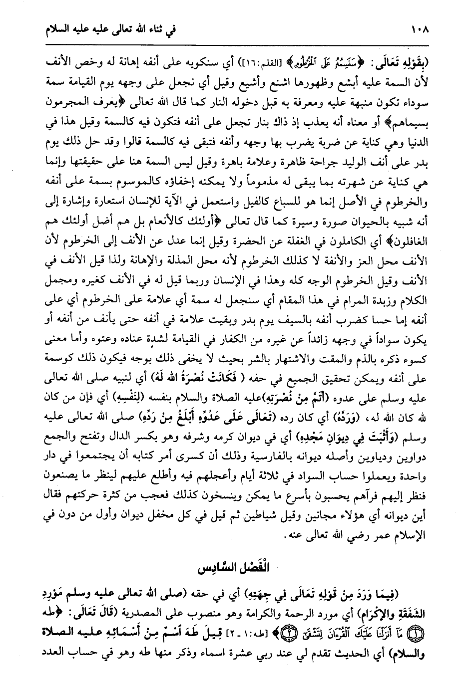 الْفَصْلُ السَّادِسُ [فِيمَا وَرَدَ مِنْ قَوْلِهِ تَعَالَى في جهته عليه الصلاة والسلام مورد الشفقة والإكرام]