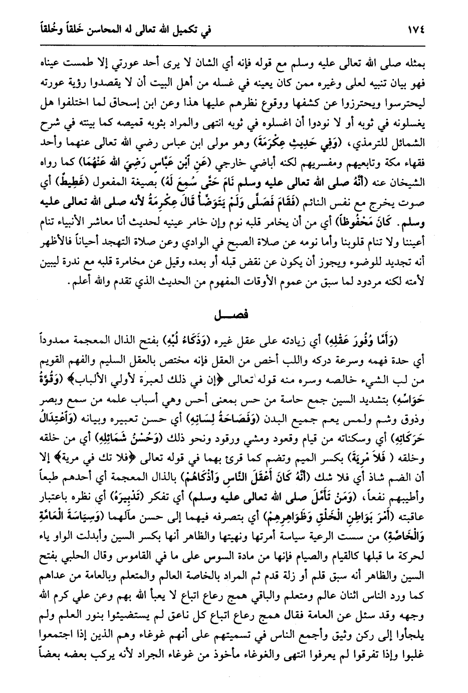 فصل [وَأَمَّا وُفُورُ عَقْلِهِ وَذَكَاءُ لُبِّهِ وَقُوَّةُ حَوَاسِّهِ وفصاحة لسانه واعتدال حركاته وحسن شمائله]