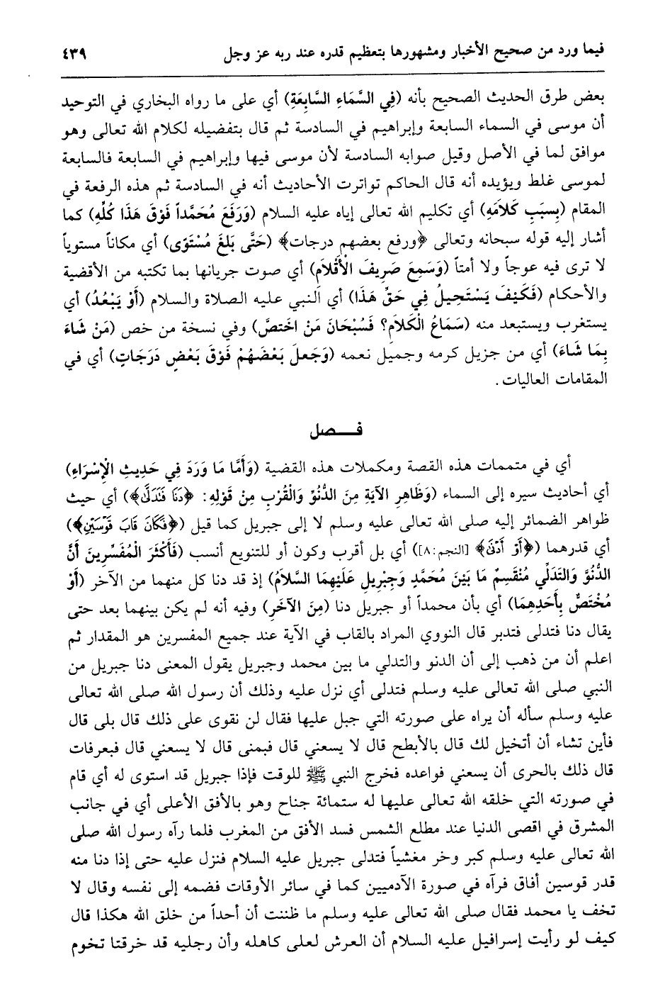 فصل [وَأَمَّا مَا وَرَدَ فِي حَدِيثِ الْإِسْرَاءِ وَظَاهِرُ الآية من الدنو والقرب]