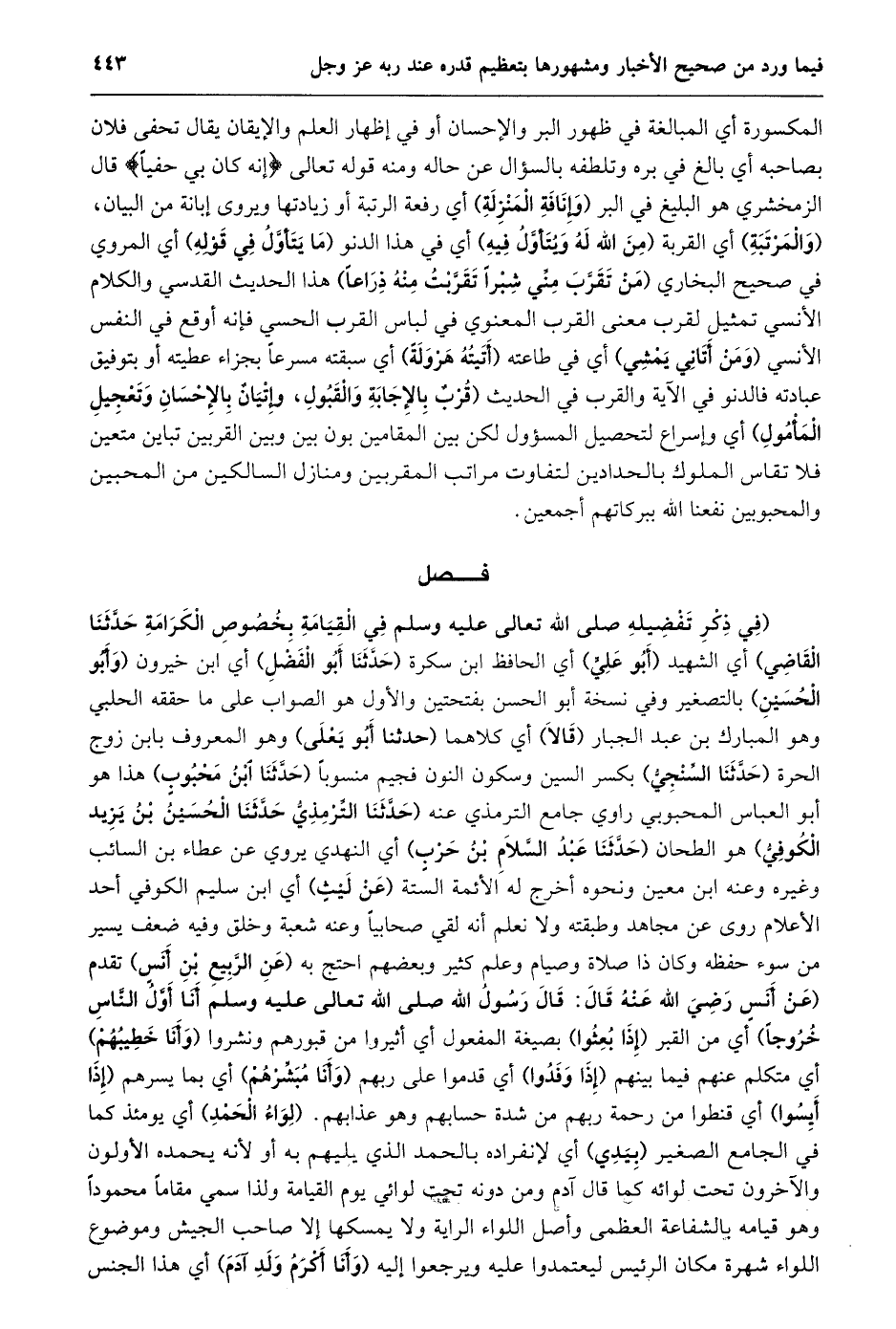 فصل [في ذكر تفضيله في القيامة بخصوص الكرامة]