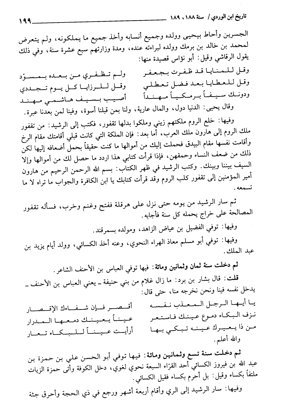 ثمَّ دخلت سنة ثَمَان وَثَمَانِينَ وَمِائَة: فِيهَا توفّي الْعَبَّاس بن الْأَحْنَف الشَّاعِر.