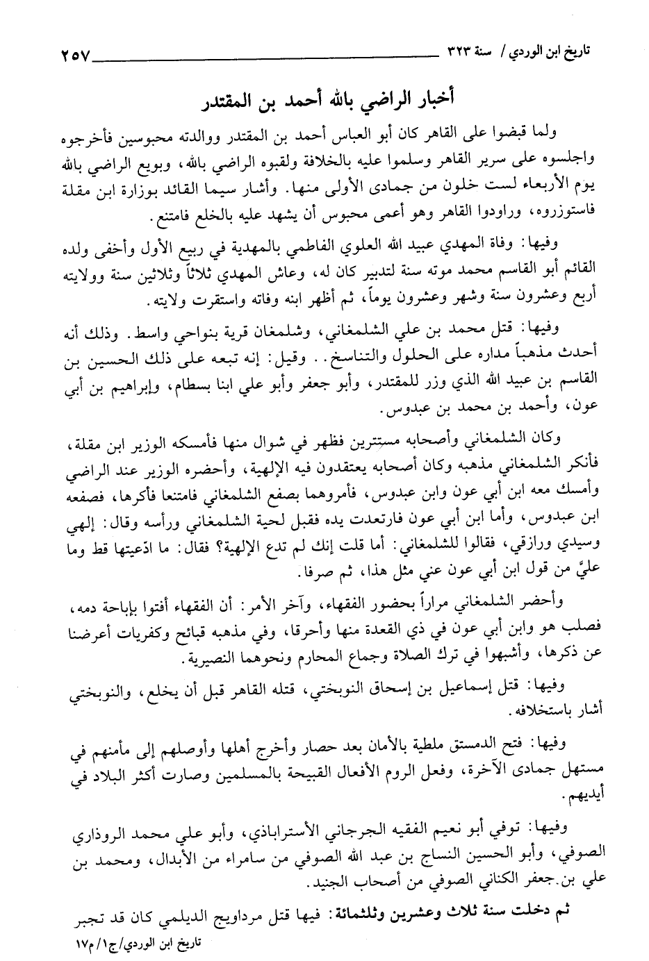 (أَخْبَار الراضي بِاللَّه أَحْمد بن المقتدر)