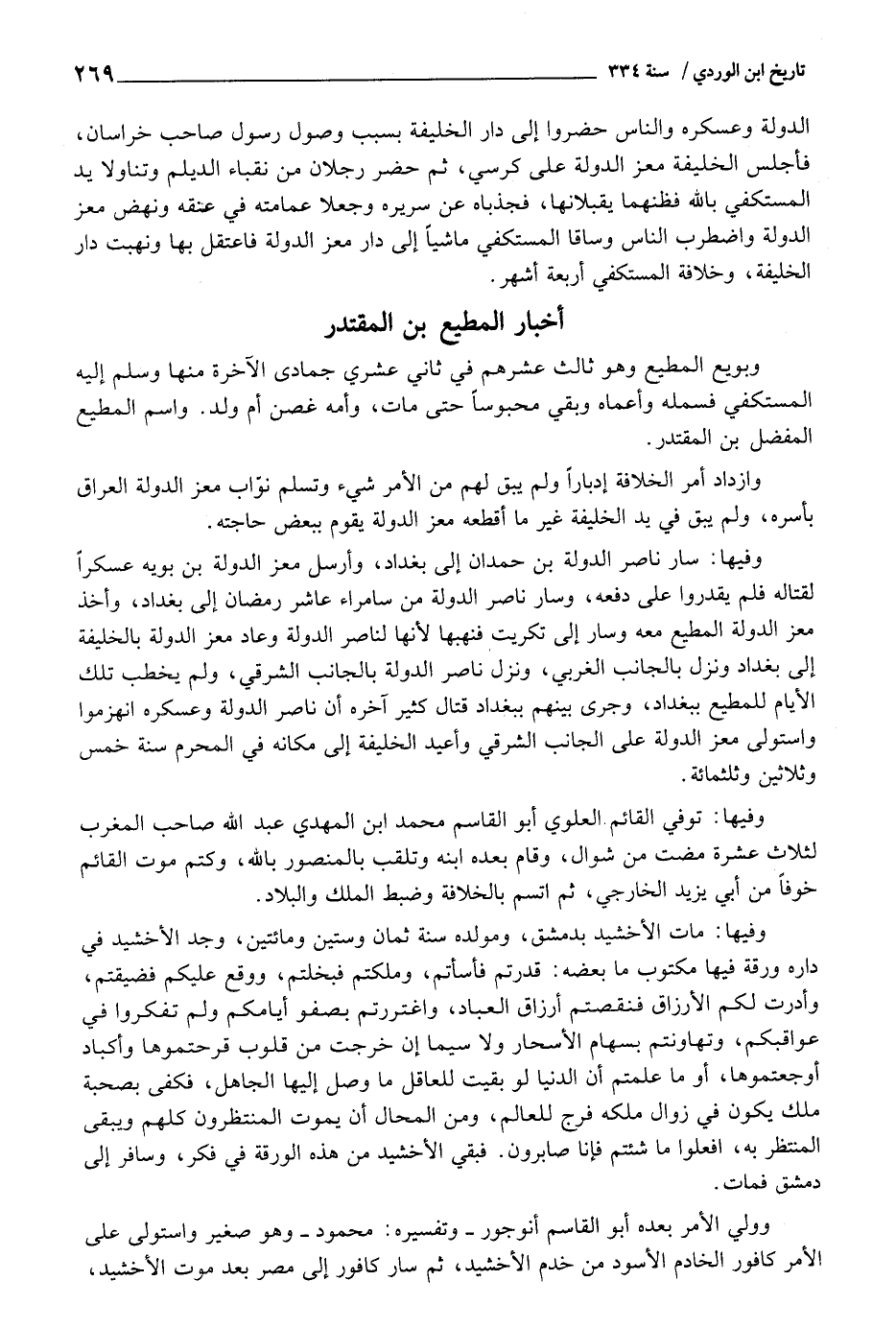 (أَخْبَار الْمُطِيع بن المقتدر)
