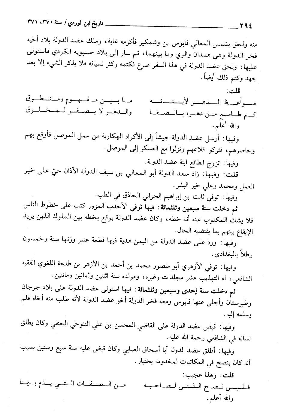 ثمَّ دخلت سنة إِحْدَى وَسبعين وثلثمائة: فِيهَا استولى عضد الدولة على بِلَاد جرجان وطبرستان وَأجلى عَنْهَا قَابُوس وَمَعَهُ فَخر الدولة أَخُو عضد الدولة لِأَنَّهُ طلب مِنْهُ أَخَاهُ فَلم يُسلمهُ إِلَيْهِ.