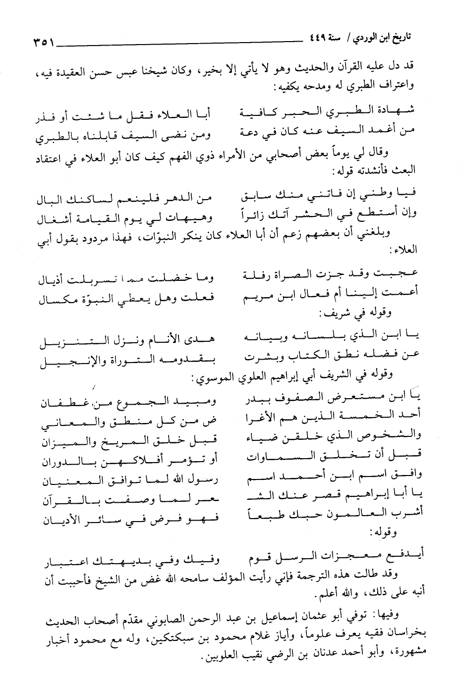 (شَهَادَة الطَّبَرِيّ الحبر كَافِيَة ... أَبَا الْعَلَاء فَقل مَا شِئْت أَو فذر)