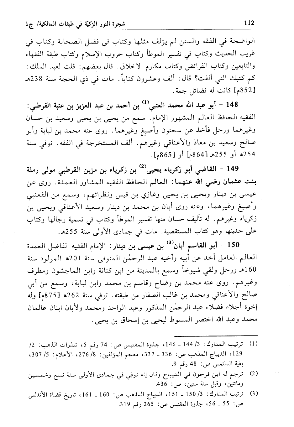 كتاب شجرة النور الزكية في طبقات المالكية (اسم الجزء: 1)