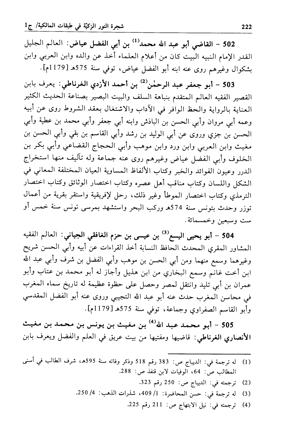 502 - القاضي أبو عبد الله محمَّد بن أبي الفضل عياض: العالم الجليل القدر الإِمام النبيه البيت كان من أعلام العلماء أخذ عن والده وابن العربي وابن بشكوال وغيرهم روى عنه ابنه أبو الفضل عياض، توفي سنة 575 هـ[1179م].
