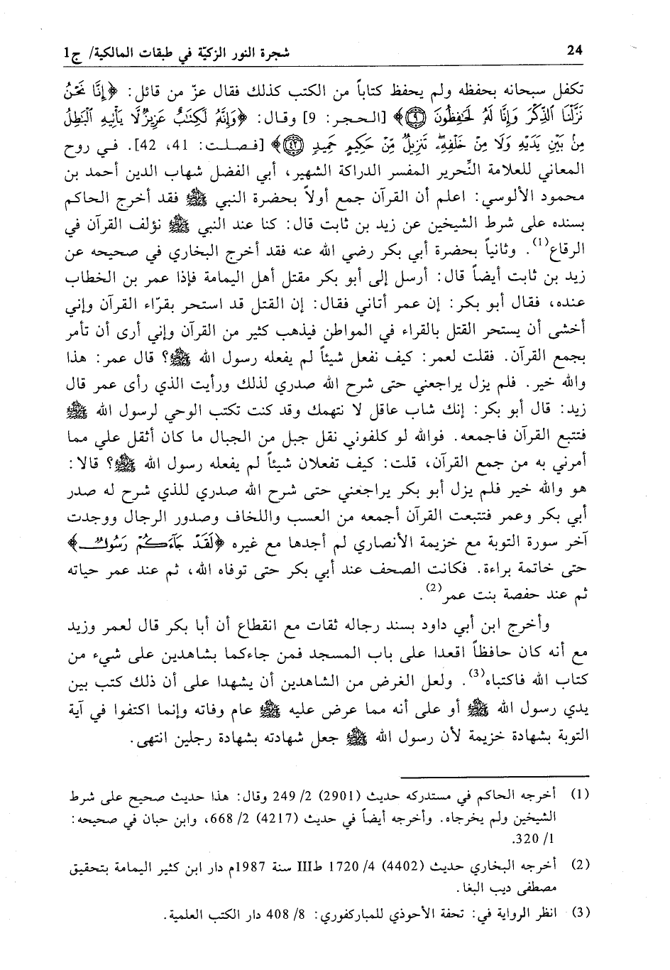كتاب شجرة النور الزكية في طبقات المالكية (اسم الجزء: 1)